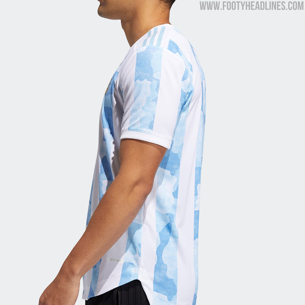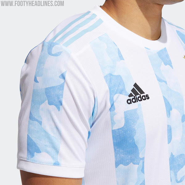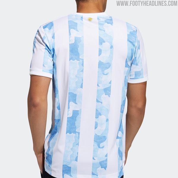 Die Streifen auf dem Adidas Argentinien 2020 Trikot sind mehr als ungewöhnlich: sie haben ein aufwendiges Muster im Inneren mit mehreren Blautönen. Das Camouflage-Design der blauen Streifen repräsentiert die Regionen Argentiniens.
