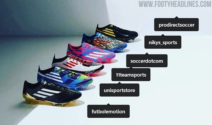 Die Adidas Memory Lane Packstollen vereinen sechs der kultigsten klassischen F50 Adizeros mit den Adidas X Ghosted. Die Fußballschuhe wurden in Zusammenarbeit mit den Fußballshops 11teamsports, Soccer.com, Futbol Emotion, Pro:Direct Soccer, Unisport und Niky's Sports entwickelt.