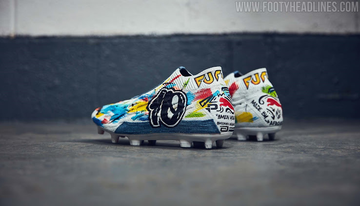 Puma hat heute die neuen Future 6.1 Fußballschuhe in 'weiß / multicolour' enthüllt, die der Mittelfeldspieler James Maddison morgen im Duell der Giganten gegen Manchester United tragen wird und die darauf ausgelegt sind, sich abzuheben.