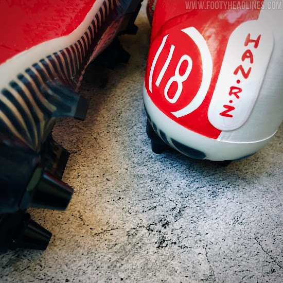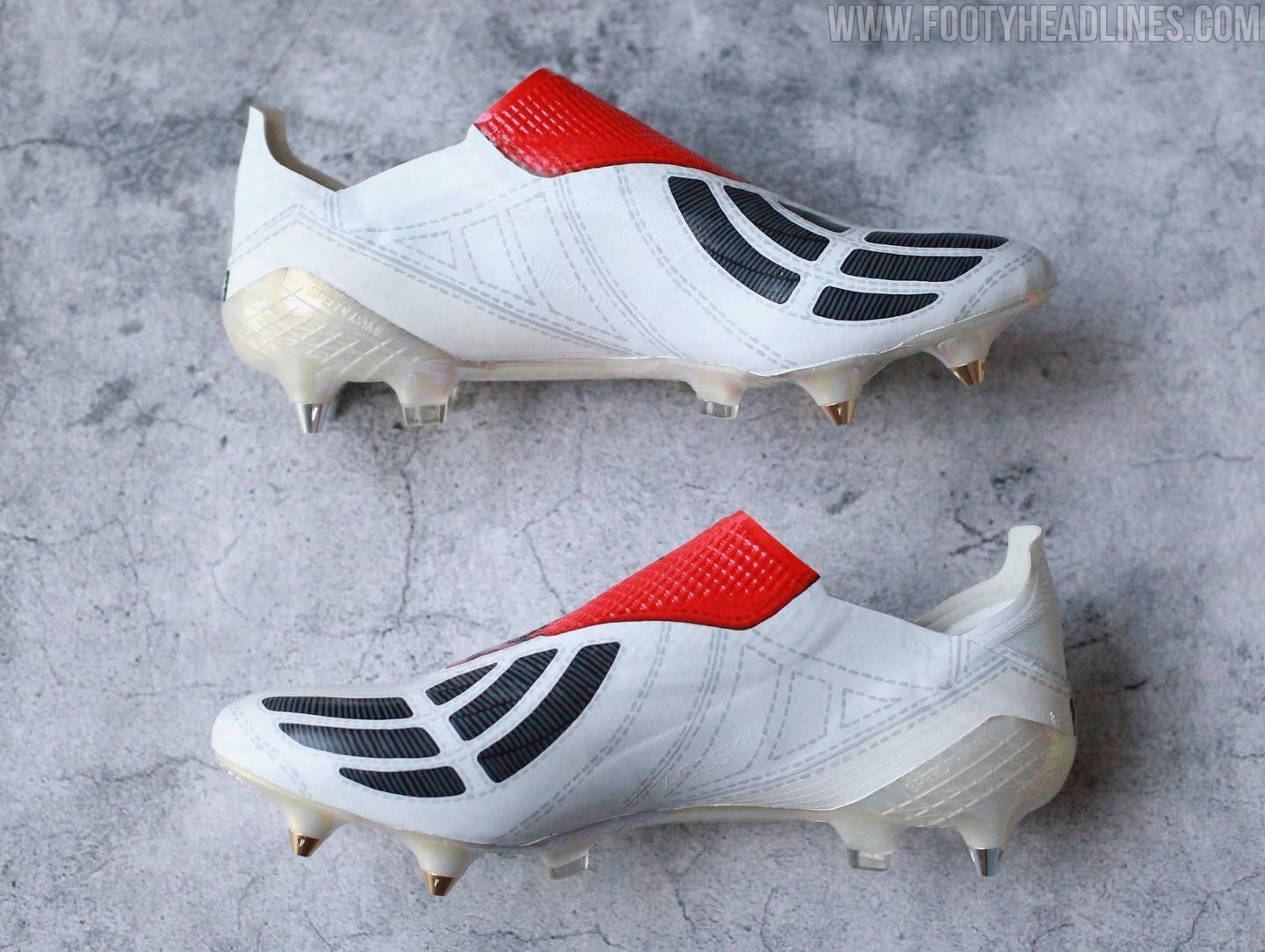 Für Morata zum Beispiel nahm er die modernen Adidas X Ghosted+ und bemalte sie mit allen Elementen des klassischen weiß/rot/schwarzen Adidas Predator Mania - das Ergebnis ist ein Adidas X Ghosted+, der aus der Ferne wie ein Predator Mania 2002 aussieht.