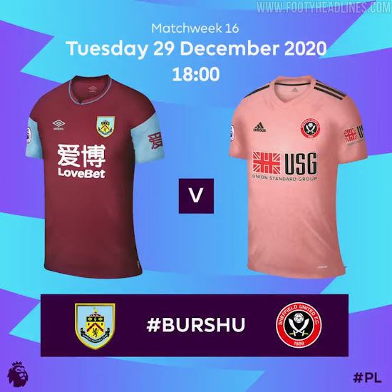 Ein nicht perfektes Trikot-Matchup könnte das Spiel zwischen Burnley und Sheffiled United sein - Sheffiled United wird ihr pinkes Adidas-Auswärtstrikot gegen das kastanienbraune von Burnley tragen.