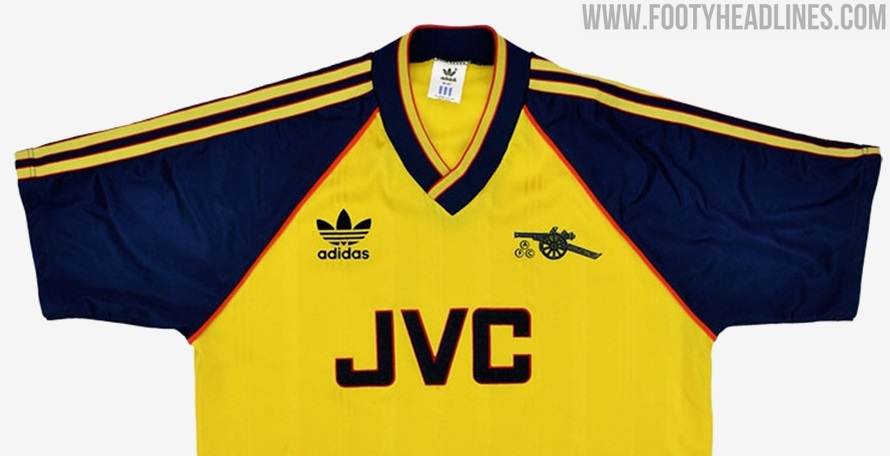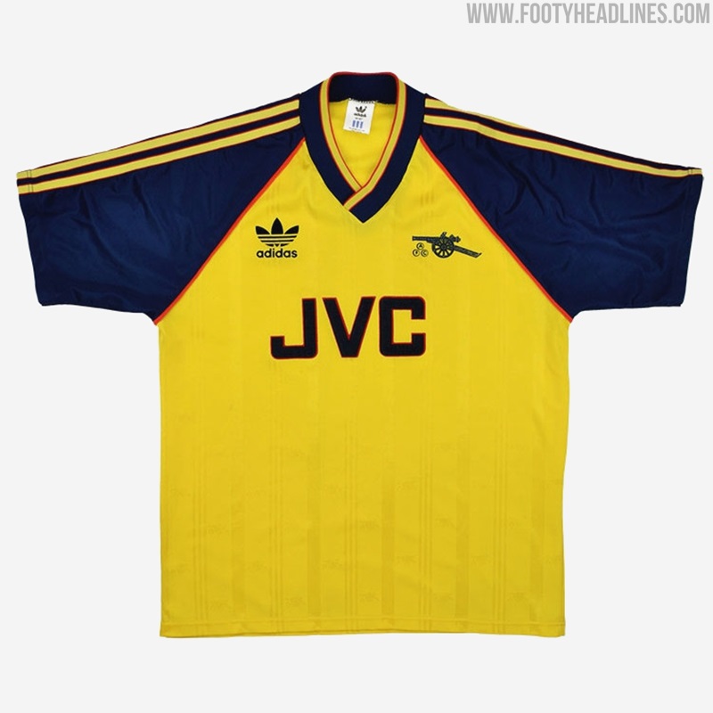Der zweite Look, der die Trikot der nächsten Saison inspiriert hat, ist das Auswärtstrikot von Arsenal, das in den späten 1980er Jahren (1988-91) drei Saisons lang getragen wurde. Es ist ebenfalls hauptsächlich gelb mit marineblauen Akzenten.