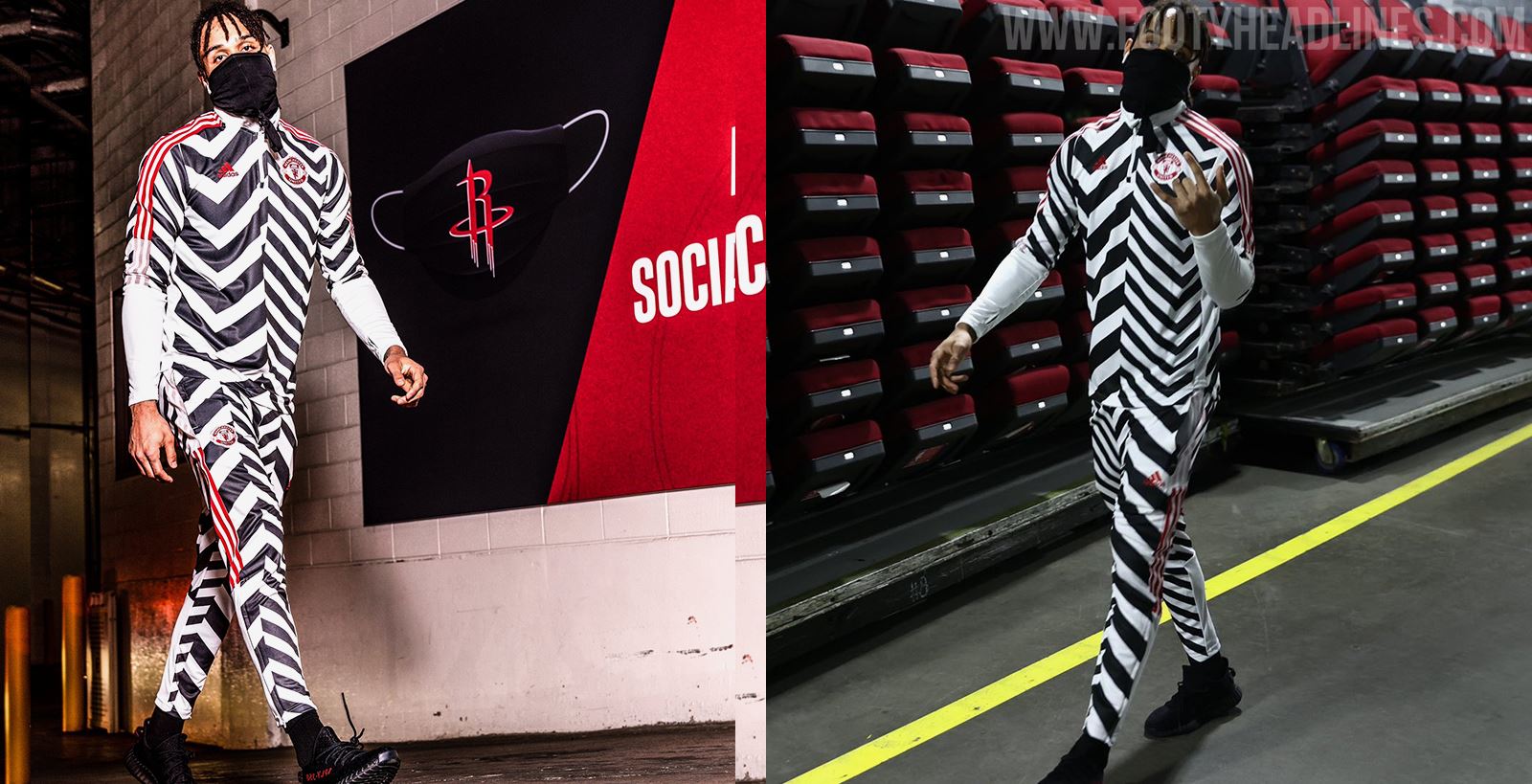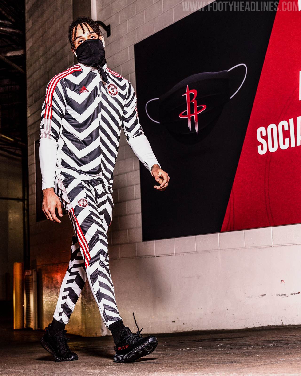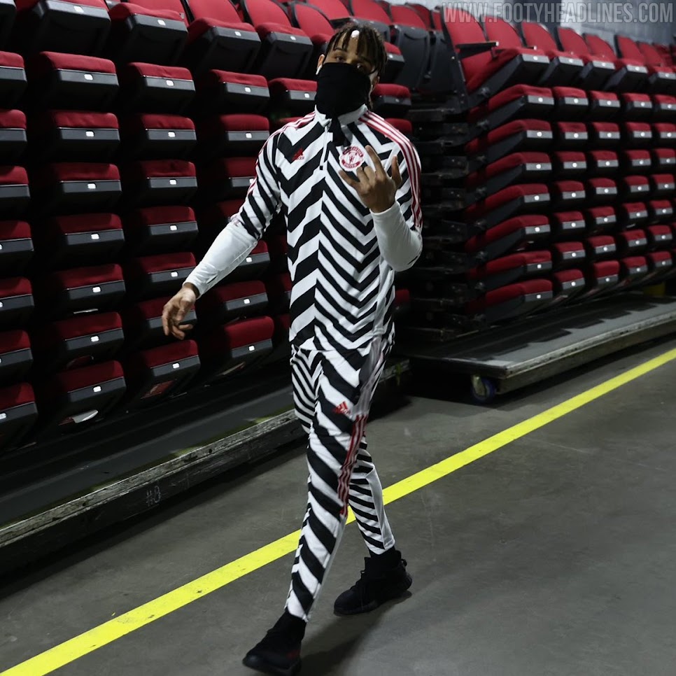 Adidas hat einen sehr gewagten Manchester United Trainingsanzug herausgebracht, der den Look des 'Dazzle Camo' 20-21 dritten Trikots hat.
