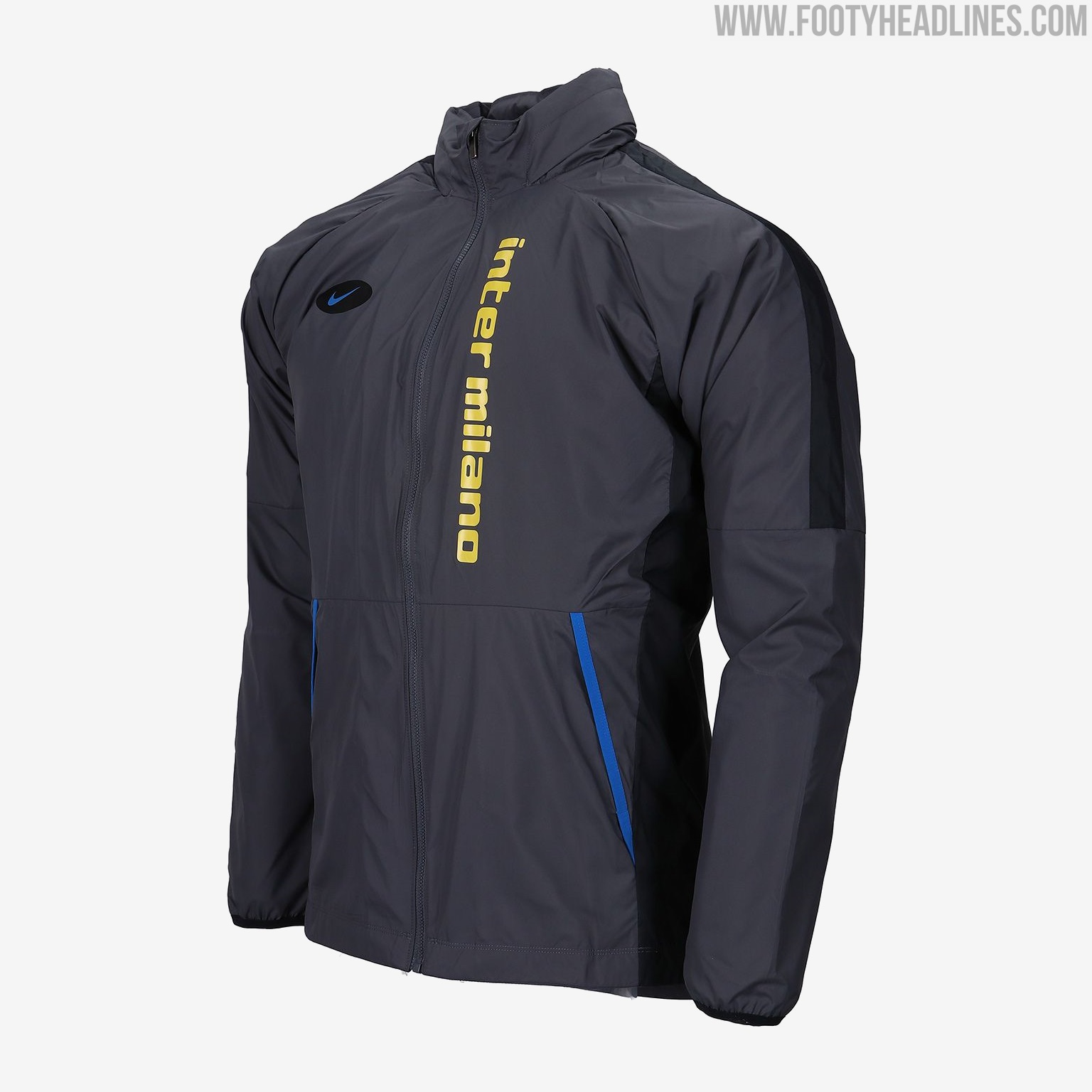 Die Nike Inter I96 Third Anthem Jacket 2020/21 ist Teil der Inter 2020-21 dritten Kollektion, die verschiedene atemberaubende Artikel umfasst, von denen viele von den späten 1990er Jahren und der Inter R9 Ronaldo Ära inspiriert sind. Unten sind einige von ihnen.