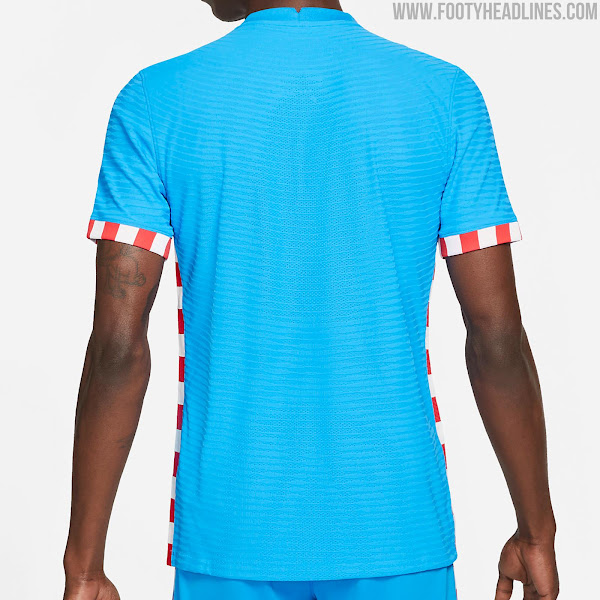 Atletico Madrids neues drittes Trikot 21-22 wurde heute offiziell vorgestellt, zwei Monate nachdem es zusammen mit dem neuen Heim-, Auswärts- und vierten Trikot enthüllt wurde.