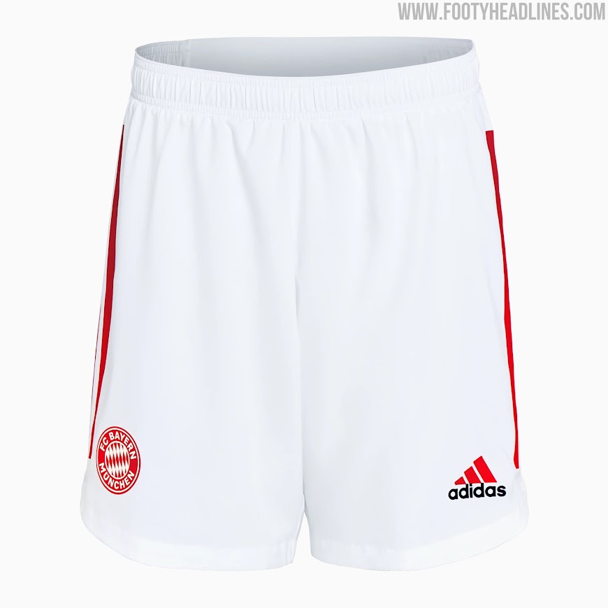 Das Adidas Bayern München 21-22 dritte Fußballtrikot ist weiß mit "Active Red" und "Night Navy" Applikationen. Das Adidas-Logo ist zweifarbig, rot und navy - inspiriert von der EQT-Serie der 1990er Jahre.