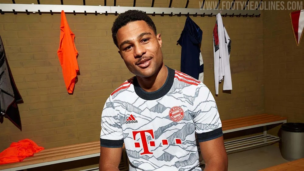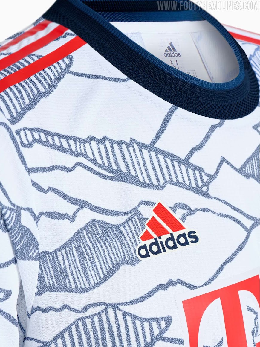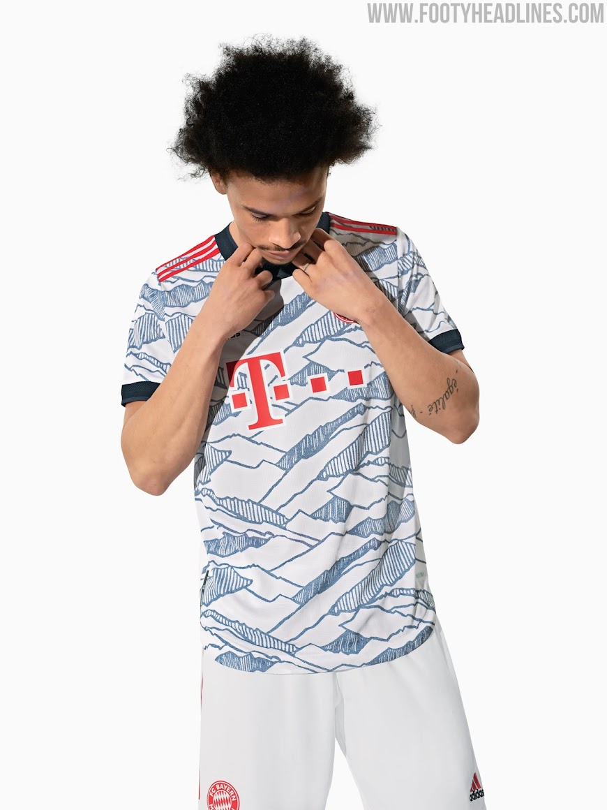 Das dritte Trikot von Bayern München stammt von Adidas und wird in der Bundesliga und Champions League 2021-2022 getragen. Das Design ist inspiriert von der Berg-Skyline im Süden der Stadt München.