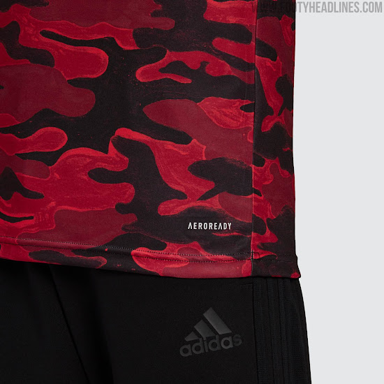 Das Trikot von Adidas Manchester United 2021 vor dem Fußballspiel wurde heute offiziell veröffentlicht. Hergestellt von Adidas, führt es ein kühnes Design im Camo-Stil ein und wird zum Aufwärmen vor den Spielen in der Premier League Ende 2020 / erste Hälfte 2021 getragen werden.