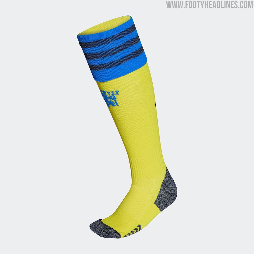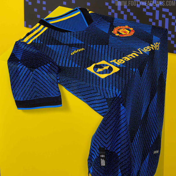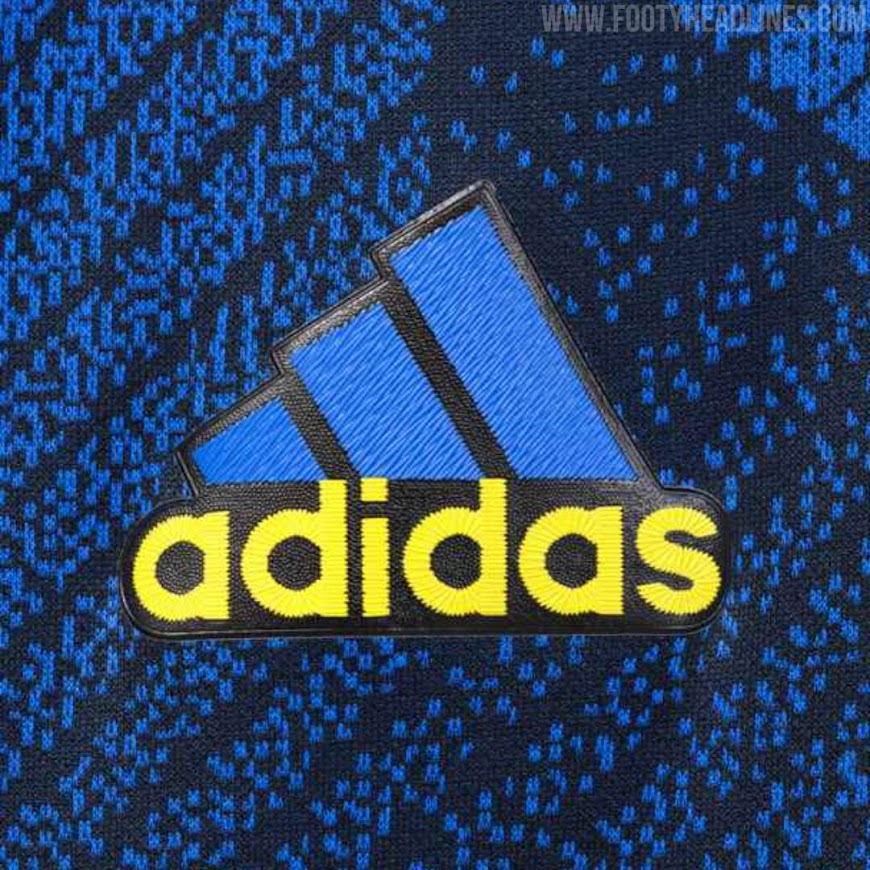 Das Adidas Logo auf dem Man United 21-22 Drittligatrikot ist halb blau, halb gelb, passend mit allen anderen Adidas Elite 21-22 Drittligatrikots.