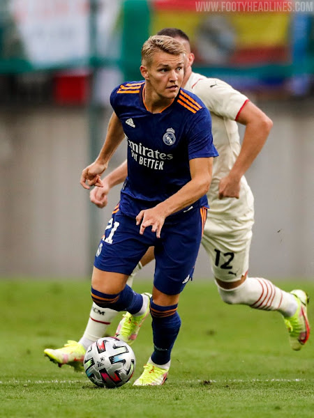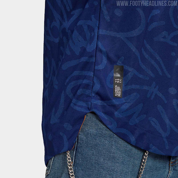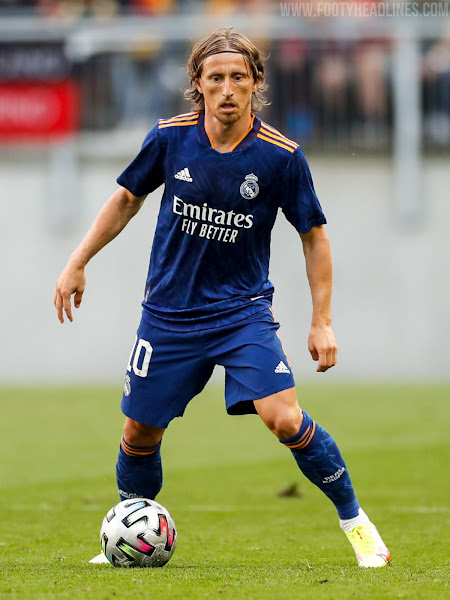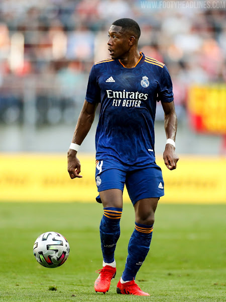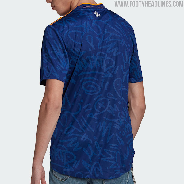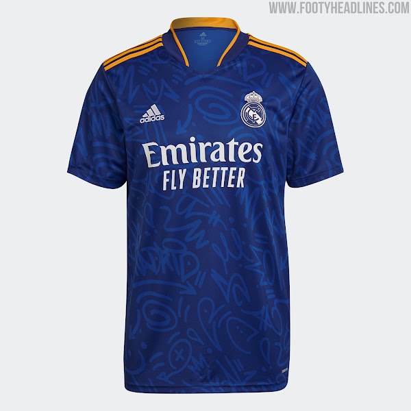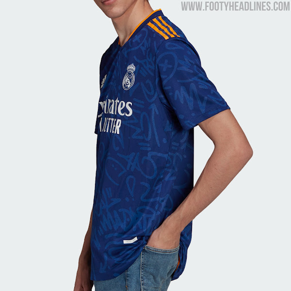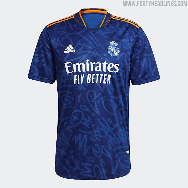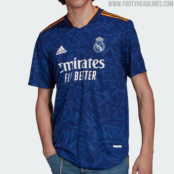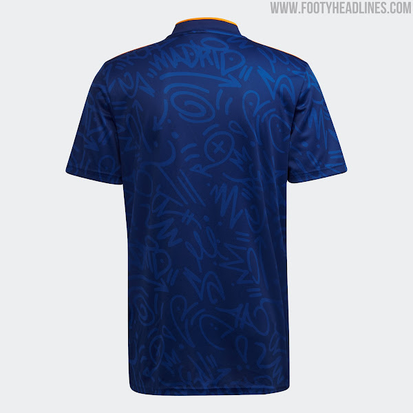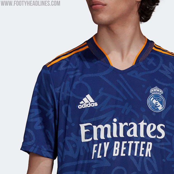 Das Real Madrid 21-22 Auswärtstrikot führt einen interessanten Look in blau, orange und weiß ein. Es wurde am 5. August 2021 vorgestellt, mehr als einen halben Monat später als erwartet.