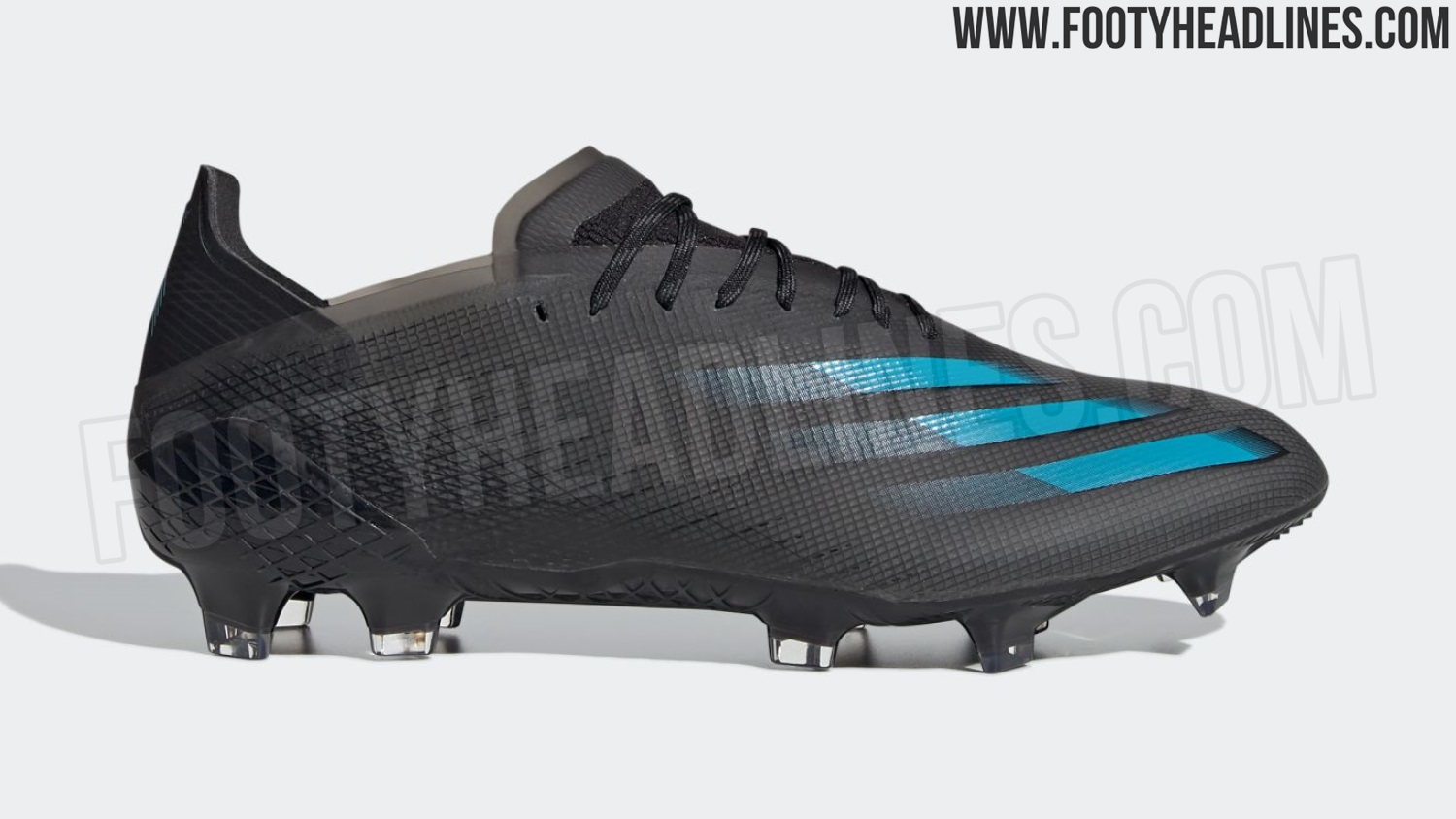 Schau dir unten die neuen adidas X Ghosted.1 Fußballschuhe in Schwarz / Signal Cyan an.
