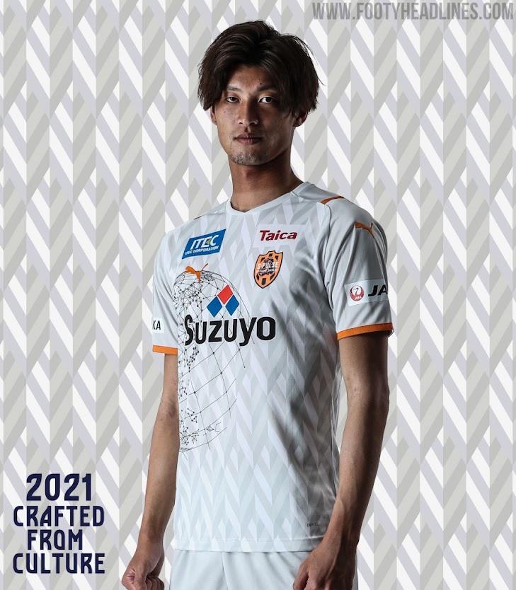 "Das Trikot ist von der T-Shirt-Industrie inspiriert, die ein repräsentativer Industriezweig von Shizuoka ist, und der Globus, der ein Symbol des Wappens ist, wird mit Drahtkunst auf der Brust angeordnet. Das Ergebnis ist ein Stück, das die Kultur und Traditionen der Heimatstadt mit einbezieht."