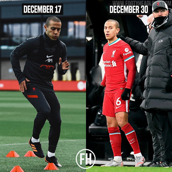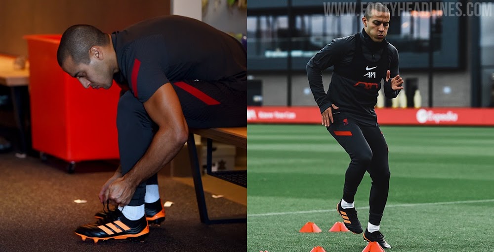 Liverpools Thiago Alcantara ist gestern mit einer individuellen Einheit ins Training zurückgekehrt, während der Spanier seine Genesung von seinen Knieproblemen fortsetzt. Allerdings trug Thiago Alcantara nicht seine üblichen Nike Phantom VNM Schuhe, sondern Adidas Schuhe.
