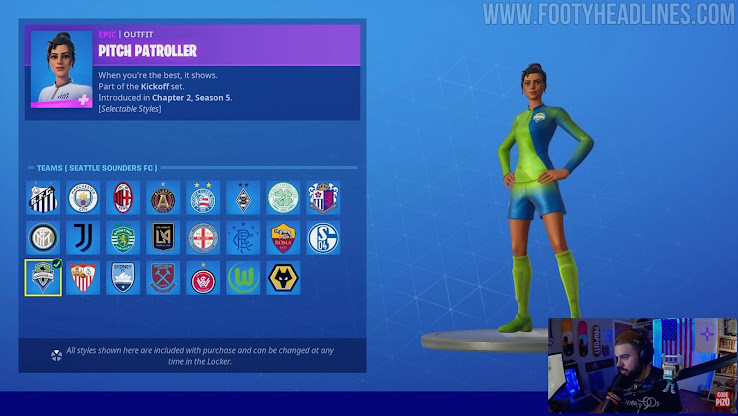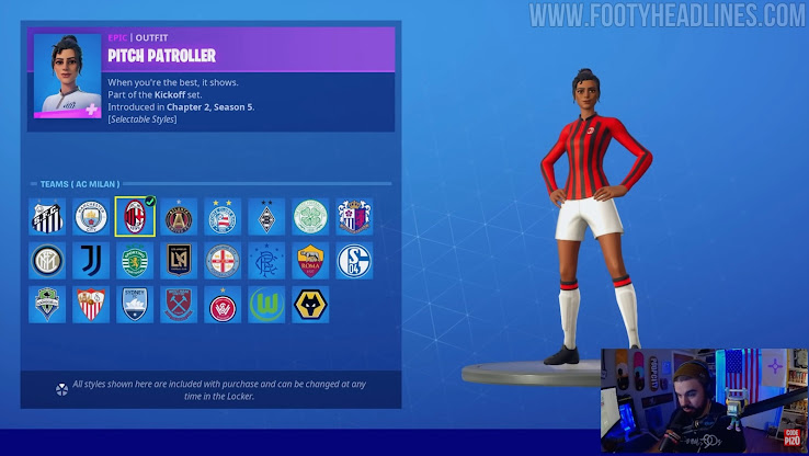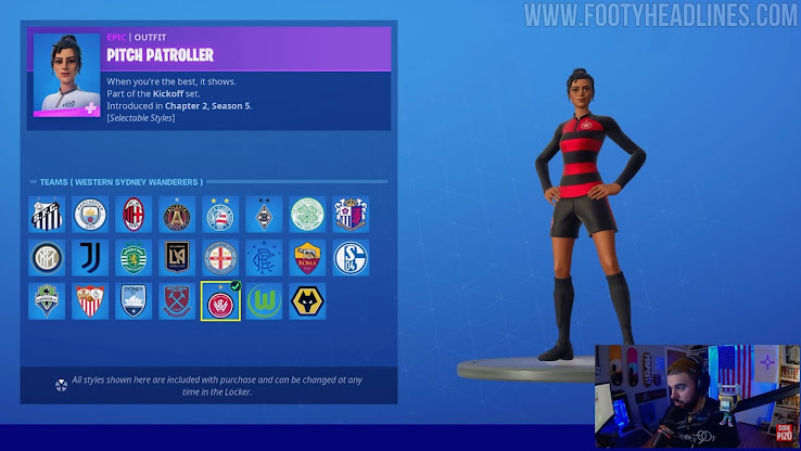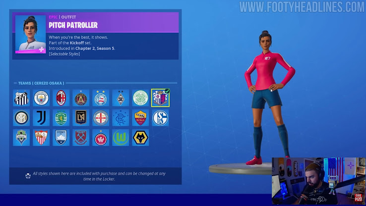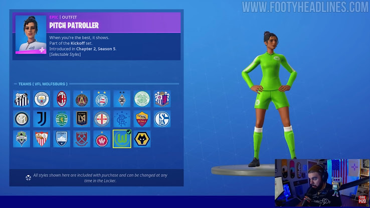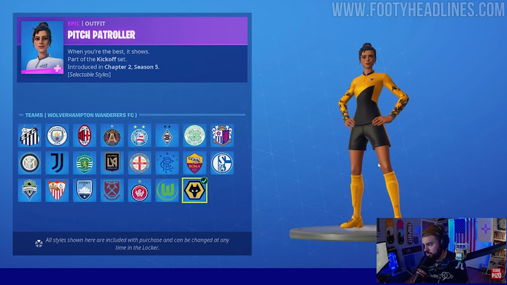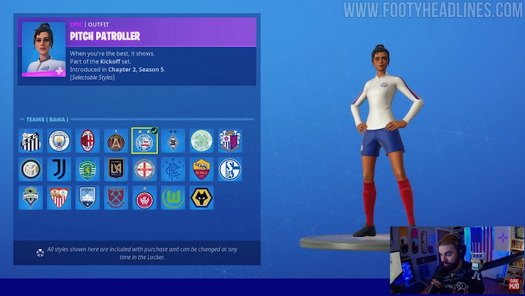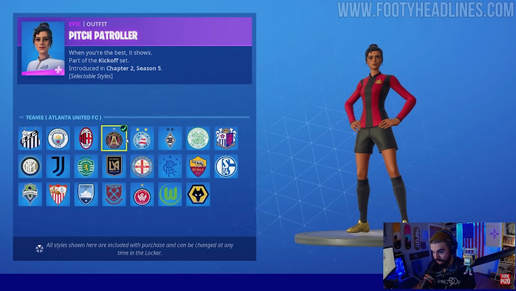 Ab dem 23. Januar können Fortnite-Spieler aus 10 verschiedenen Varianten von männlichen und weiblichen Outfits wählen und ihren Lieblingsverein im Spiel repräsentieren. Jedes Outfit kann mit jedem der 23 Fußballvereine getauscht werden, mit denen Epic Games weltweit zusammenarbeitet.