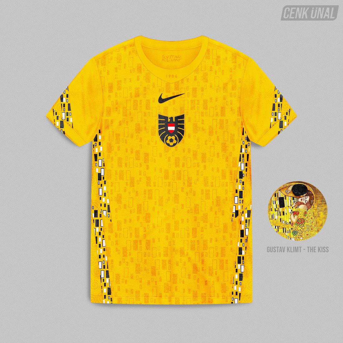 Zum Beispiel hebt sein Österreich-Konzepttrikot Pumas 'Crafted from Culture'-Motiv auf eine andere Ebene, indem es sich von dem berühmten Gemälde 'Der Kuss' des Österreichers Gustav Klimt (1862-1918) inspirieren lässt, während es gleichzeitig aktuelle Nike-Vorlagenideen umsetzt.