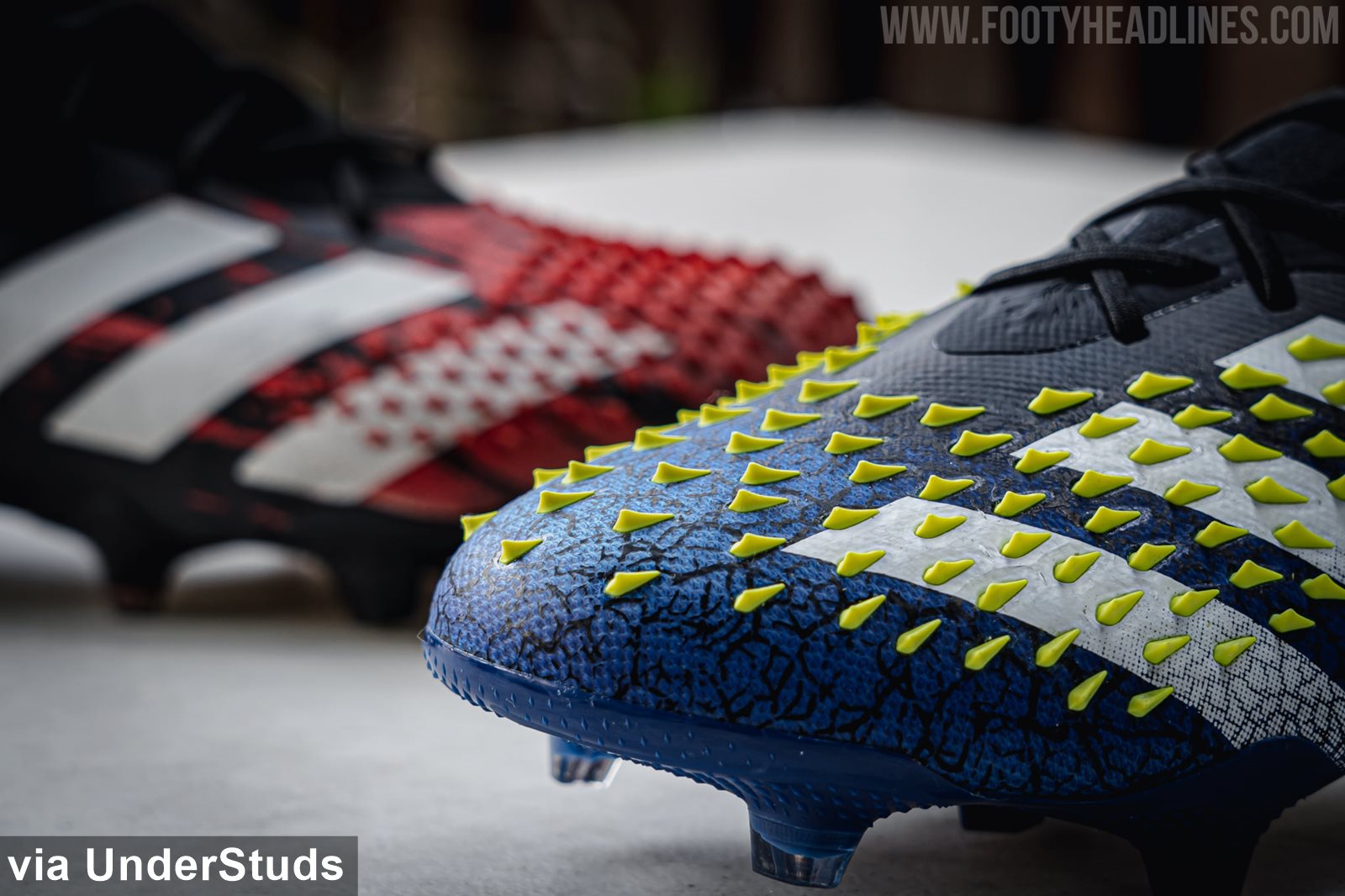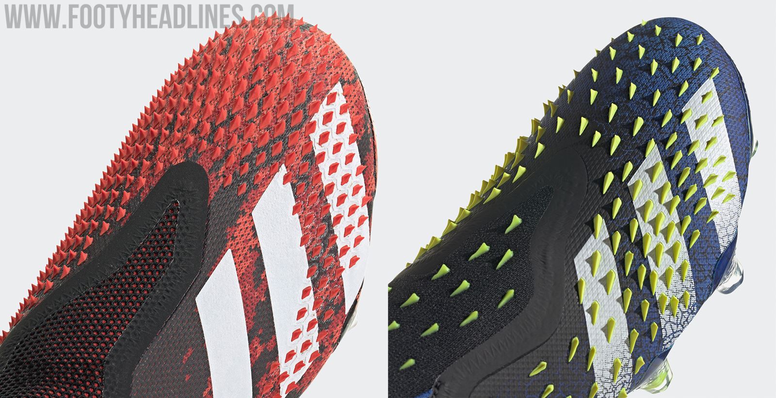 Die nächste Generation der Adidas Predator Freak 21+ Fußballstollenschuhe kommt mit dem gleichen Obermaterial in Bezug auf die Technik. Allerdings gibt es zwei wesentliche Unterschiede - die Anzahl und Ausrichtung der "Stacheln" und die Obermaterialkonstruktion.