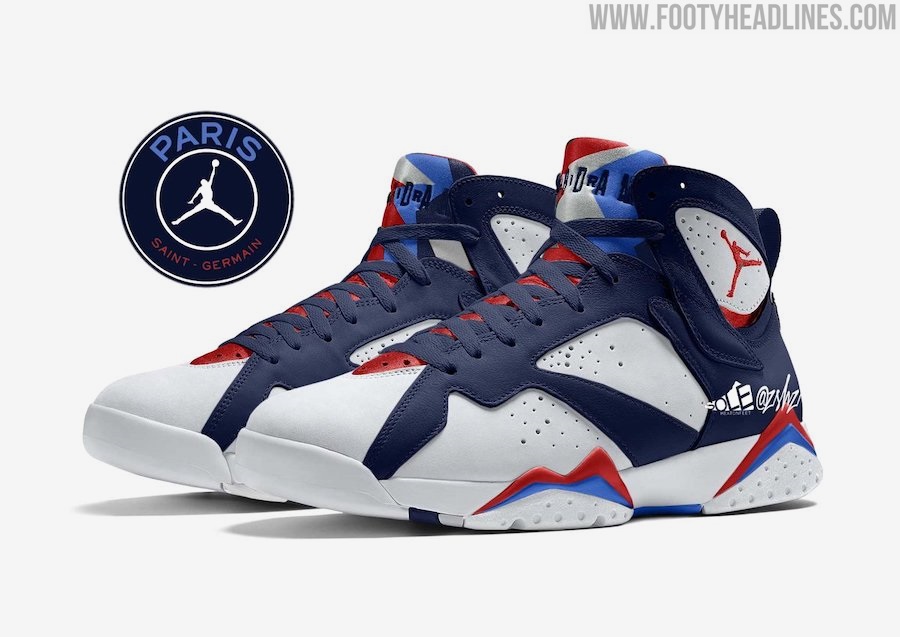Im Frühjahr 2021 werden Air Jordan und Paris Saint-Germain ein neues Trikot enthüllen, das erste Trikot des Vereins, das von Jordan hergestellt wird. Jetzt können wir dir einen ersten Blick auf den Air Jordan 7 "PSG" Sneaker geben, der Teil der dazugehörigen Kollektion ist, dank eines Mock-ups von @zsneakerheadz.