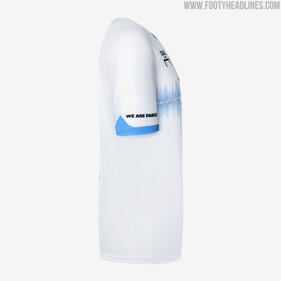 DasGoal Studio Daegu FC 2021 Auswärtstrikot hat einen maßgeschneiderten Look in Weiß, Himmelblau und Schwarz. Das Hauptmerkmal ist die "Sound Wave"-Grafik, die die tatsächliche akustische Welle von "Kung Kunggol!", der symbolischen Jubelkultur der Daegu FC-Fans, visuell zum Ausdruck bringt.