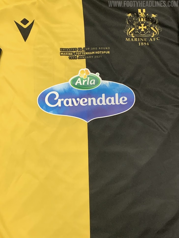 Ein schlichter schwarzer Rundhalskragen, ein schwarzer Macron Hero auf der Brust und eine goldene Wiedergabe des Vereinslogos auf der gegenüberliegenden Seite runden den auffälligen Look ab. Ebenfalls auf der Brust befinden sich die offiziellen Spieldaten des heutigen FA Cup Spiels der 3. Runde.
