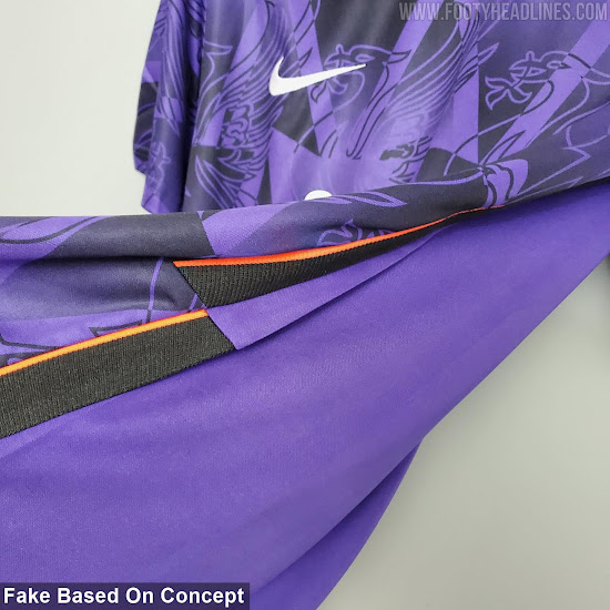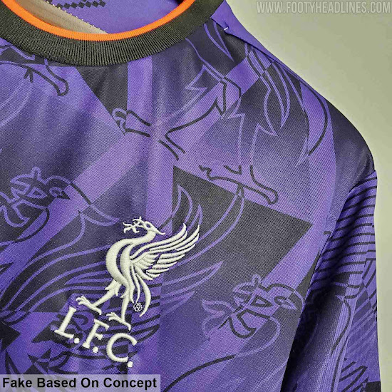 Das Liverpool Trikotkonzept besticht durch einen mutigen Look in Lila, Schwarz und Rot. Das herausragende Merkmal ist ein einzigartiger All-Over-Grafikdruck, der aus einer Mischung aus Dreiecken und dem Liverbird besteht. Allerdings handelt es sich nicht um ein authentisches Nike Produkt.