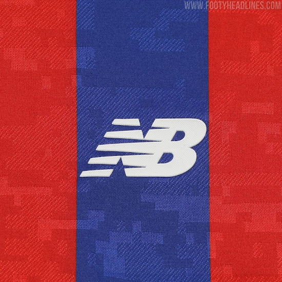 Das New Balance FC Tokyo 2021 Trikot kombiniert das charakteristische blau-rot gestreifte Design des Vereins mit einem digitalen Camouflage-Muster, um Klassik und Moderne zu verbinden.