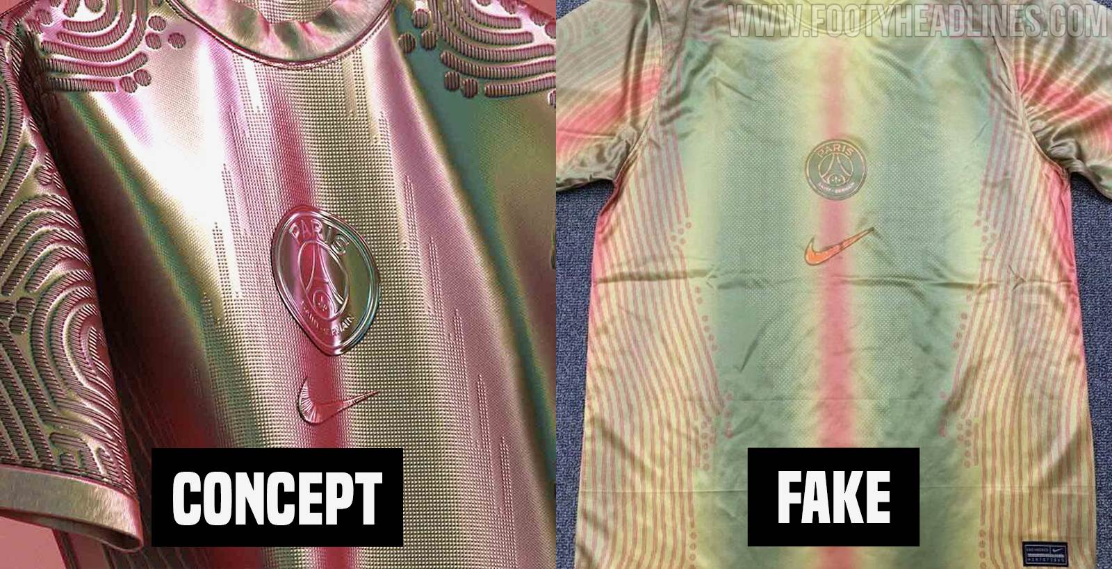 Lächerliche Qualität: Fälscher versuchen, schillerndes "Rose Gold" Nike PSG Concept Trikot zu produzieren