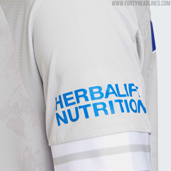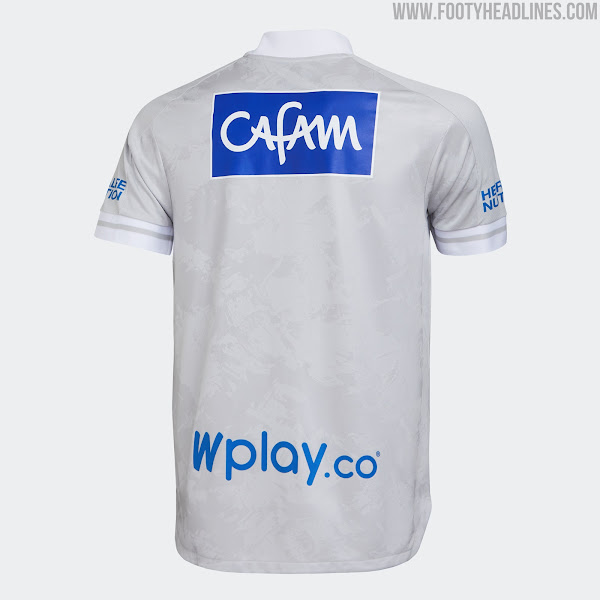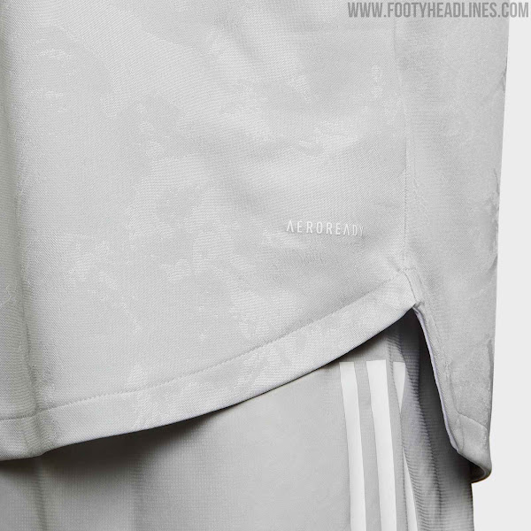 Basierend auf der veralteten Condivo 20 Template, kombiniert das adidas Millonarios 2021 Auswärtstrikot eine graue Basis mit einem hellgrauen Oberteil und Ärmeln, während es eine subtile hellgraue 'Grunge' Grafik auf dem Körper gibt.