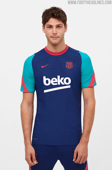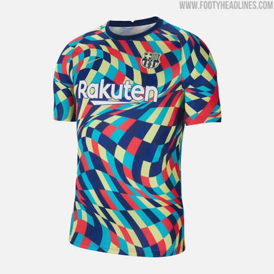Die Nike Barcelona 2021 Trainings- und Pre-Match-Shirts wurden heute veröffentlicht. Hergestellt von Nike, werden sie zum Training bzw. zum Aufwärmen vor den La Liga Spielen 2021 getragen werden.