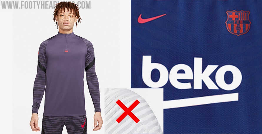 Das neue Nike 2021-2022 Teamwear Trikot ist der Nachfolger des 1. NextGen VaporKnit und baut auf diesem Fundament mit einem ähnlichen Gesamtbild auf. Es kommt ohne die Swooshs an den Ärmeln daher, verfügt aber über einen traditionellen Swoosh auf der linken Brust, gegenüber einer monochromen Wiedergabe des Wappens von Barcelona. Der diagonale Streifen auf jedem Ärmel bleibt.