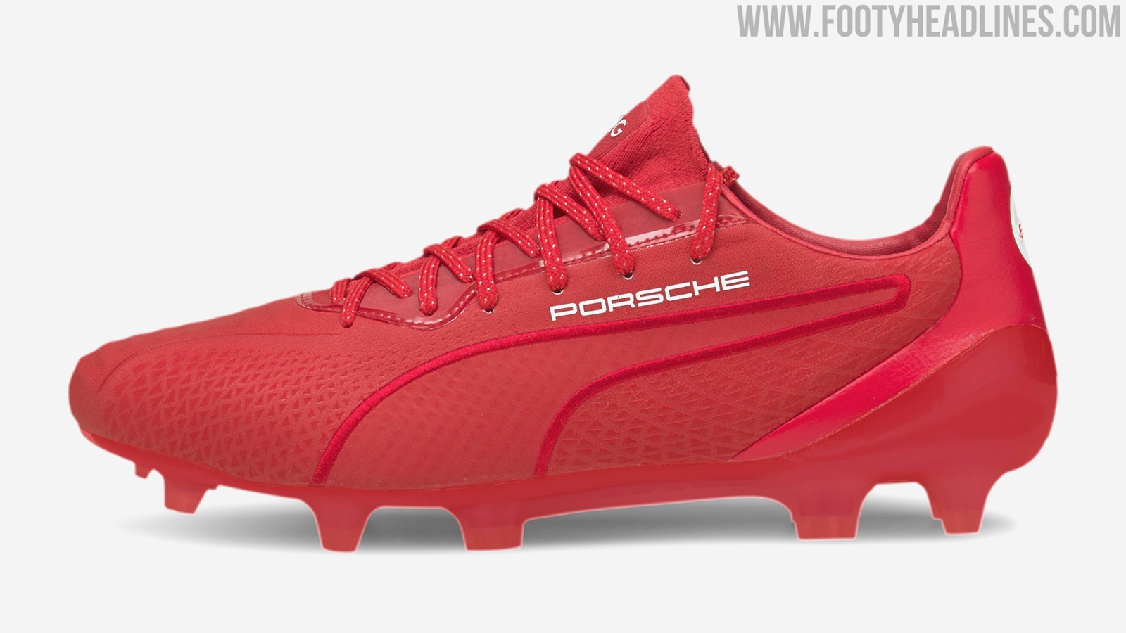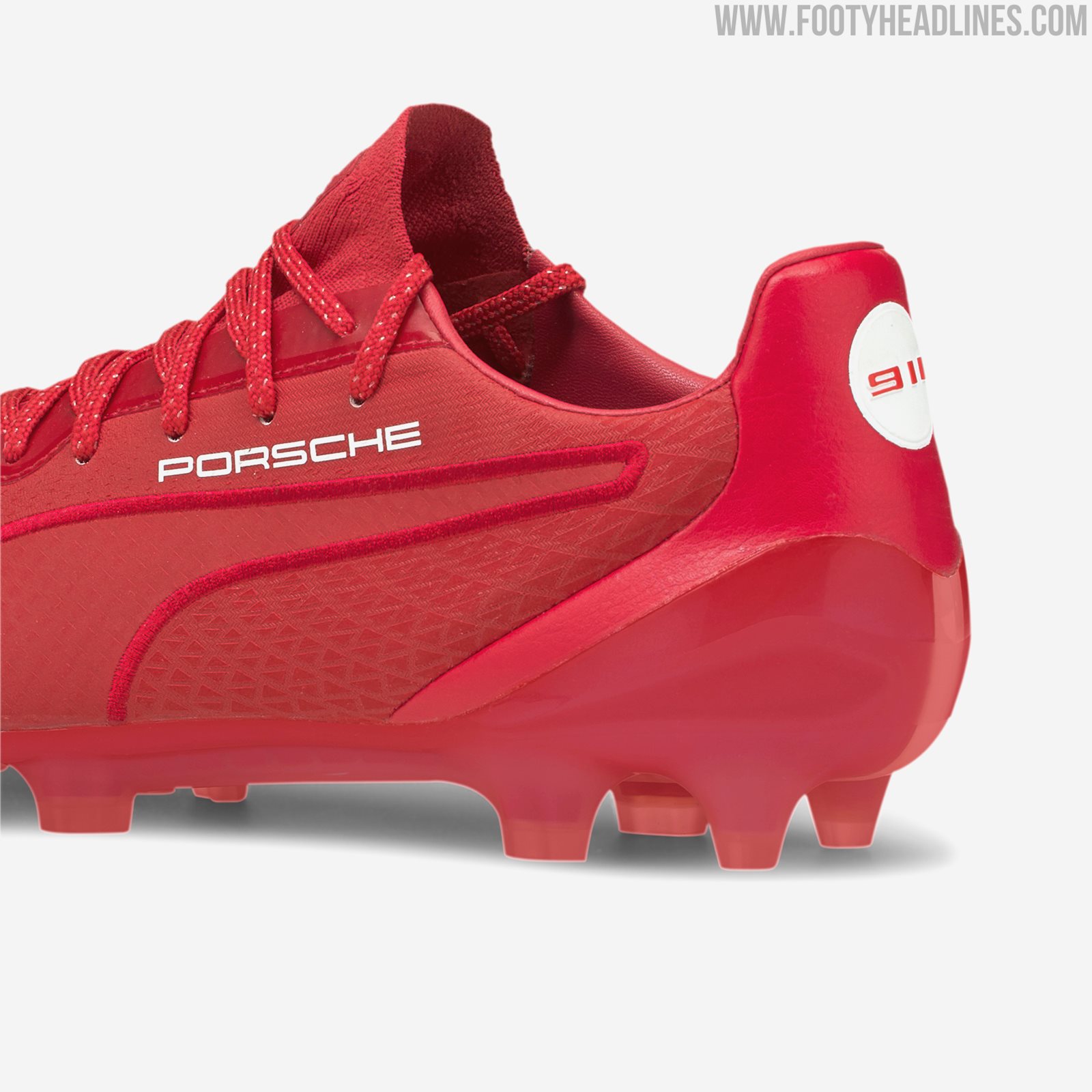 Die '911 Legacy' Puma King Platinum Fußballschuhe aus der neuen 'Porsche' Kollektion führen ein klares Design in Rot und Weiß ein, eine der ikonischen Farben des Porsche 911.