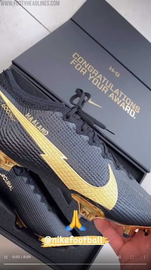 Bessere Bilder: Schwarz / Gold Nike Mercurial Erling Haaland 'Golden Boy 2020' Fußballschuhe enthüllt