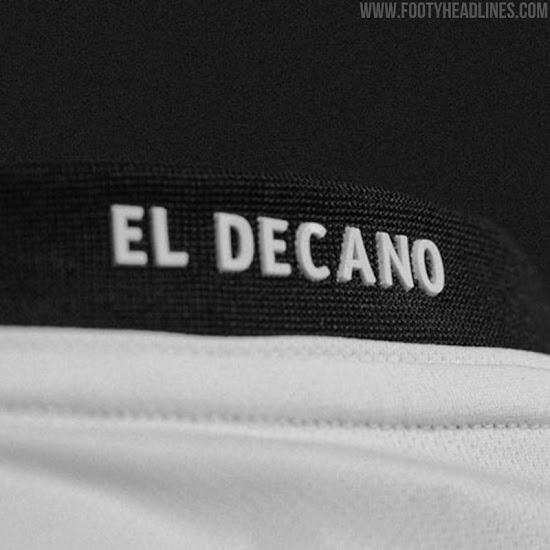 Das Logo von Ausrüster Meta Sports ist auf der linken Brustseite in Schwarz und Gold zu finden, während das Wappen von Club Olimpia auf der gegenüberliegenden Seite in einer vollfarbigen Version mit mehreren silbernen Sternen darunter und einem goldenen obenauf sitzt. Der Spitzname des Klubs , El Decano (Der Dekan), ziert in Weiß den Nacken.