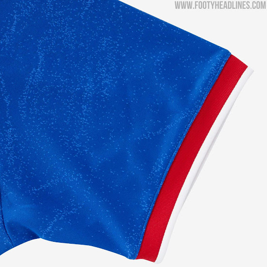 Das Adidas Yokohama F. Marinos 2021 Trikot ist hauptsächlich blau mit einem roten Rundhalskragen und roten Ärmelbündchen, die beide weiß abgesetzt sind. Die Sponsorenlogos sind weiß, während das Vereinswappen in voller Farbe auf der linken Brust zu sehen ist, darüber befinden sich vier Sterne.