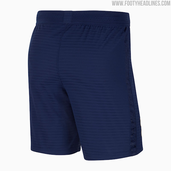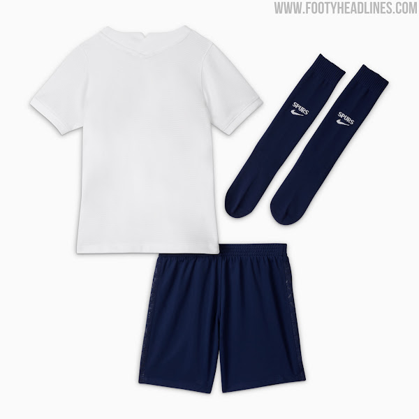 Nike kombiniert das Tottenham 2021-22 Trikot mit marineblauen(Binary Blue) Hosen und Stutzen. Das letztjährige Trikot hatte marinefarbene Hosen und weiße Stutzen. Eine alternative Version mit weißen Hosen wird ebenfalls veröffentlicht werden.