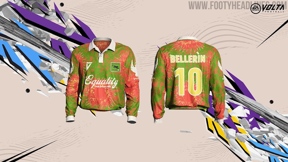 Inspiriert vom Wandel, greifen Bellerins FIFA 21 Volta Trikots verschiedene Themen wie Recycling oder die LGBTQIA+ Community auf. Designtechnisch fallen sie durch auffällige Farben und interessante Ansätze auf.