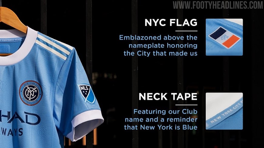 Das Trikotdesign zeigt die ikonische blaue Farbgebung des Klubs mit einem tonalen Streifenmuster, inspiriert von den verschiedenen Trikots der städtischen Arbeiter von New York City. Die weißen Details erinnern an das allererste Trikotdesign des NYCFC aus dem Jahr 2015, haben aber ein modernes, zeitgemäßes Design. Eine Adaption der New Yorker Stadtflagge prangt über dem Namensschild des Spielers und ist ein stolzes Bekenntnis, dass der Club eine Gemeinschaft von starken und widerstandsfähigen New Yorkern repräsentiert.