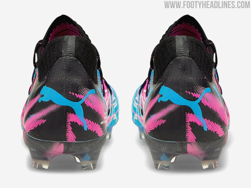 Schau dir unten die neuen Puma Future Z 1.1 Creativity Fußballschuhe in Schwarz / Luminous Blau / Liminous Pink an.