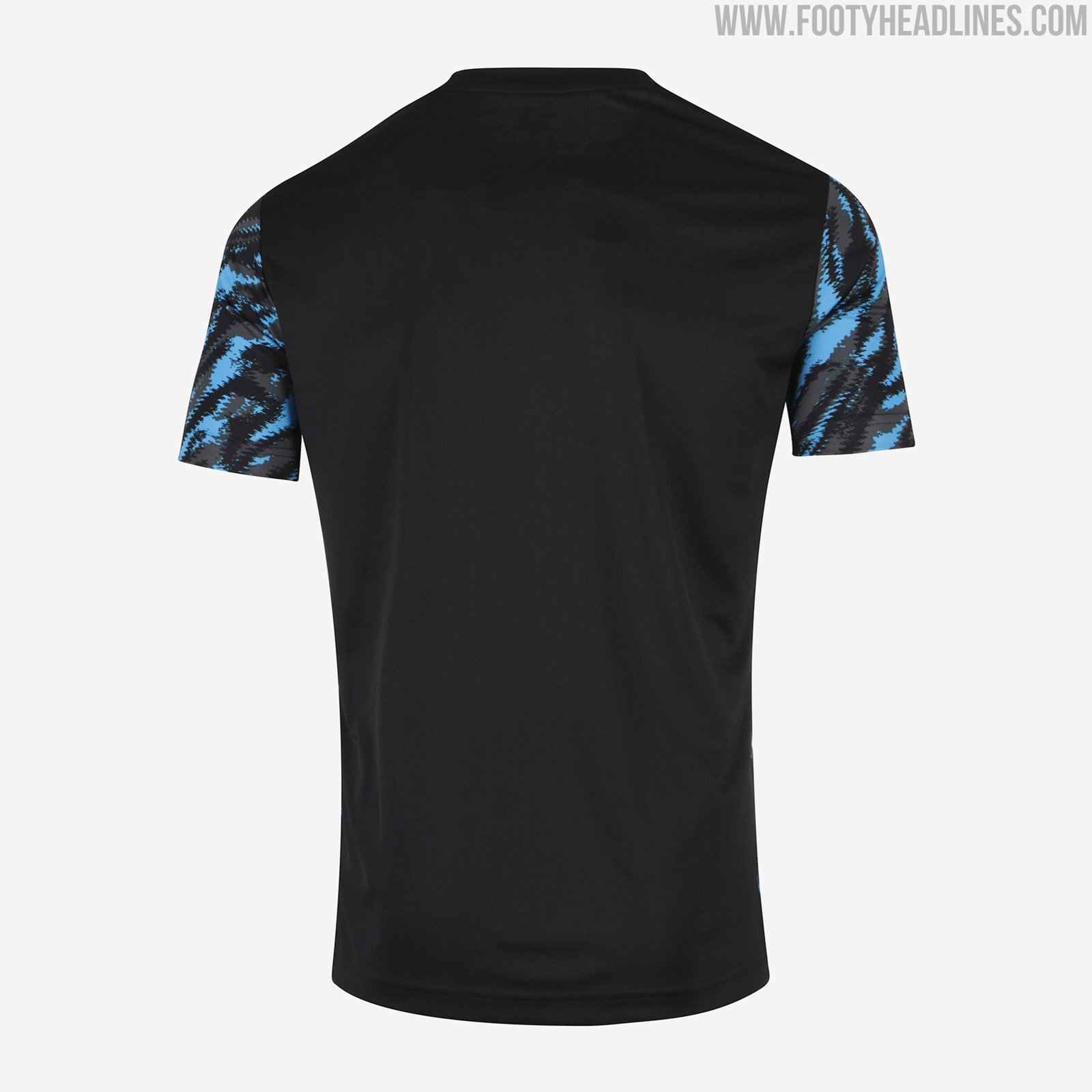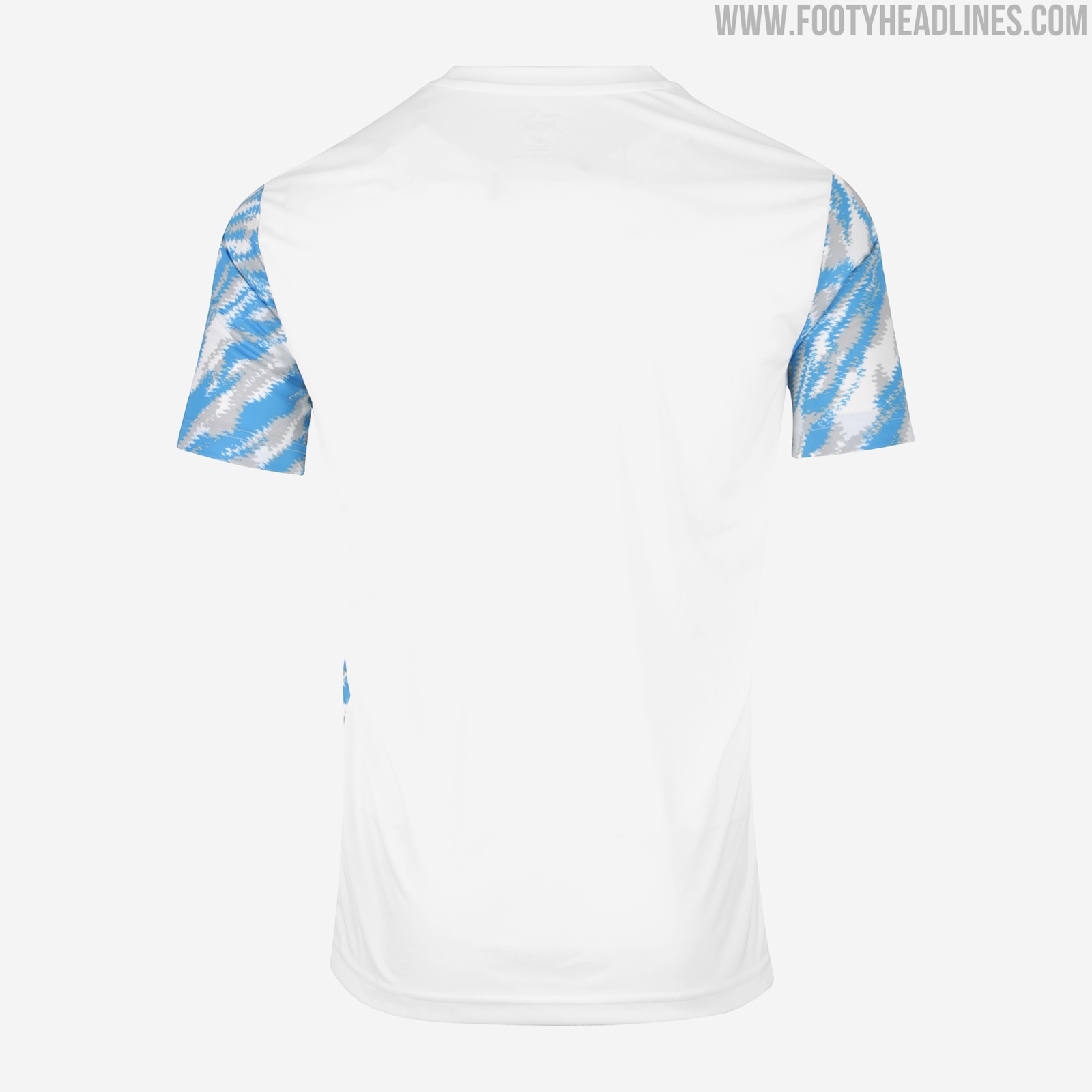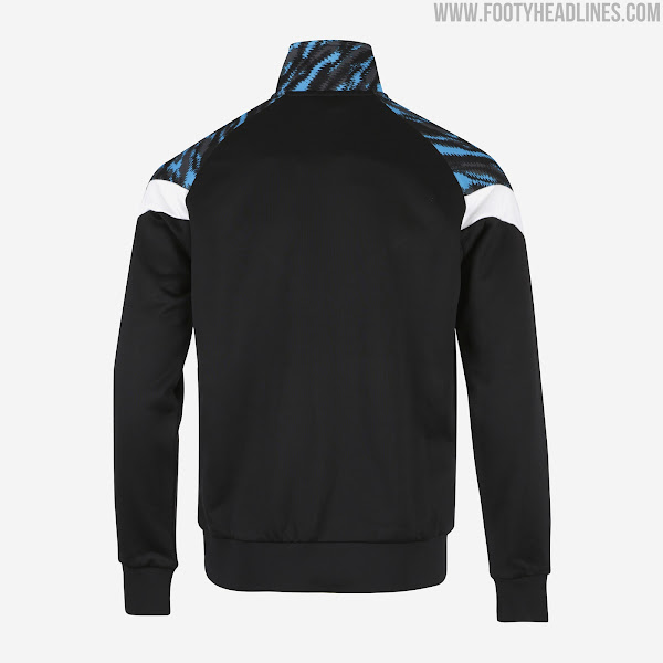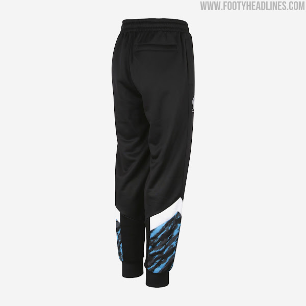 Die Puma Olympique de Marseille "Iconic" Kollektion, die in der Endphase der Saison 2020-21 getragen werden soll, kombiniert einen lebendigen Camouflage-Look auf der Vorderseite und den Ärmeln mit weißen Logos auf der Brust. Der Trainingsanzug verfügt über einen V-förmigen Camouflage-Print auf der Brust, wobei der Bereich darunter komplett schwarz ist.