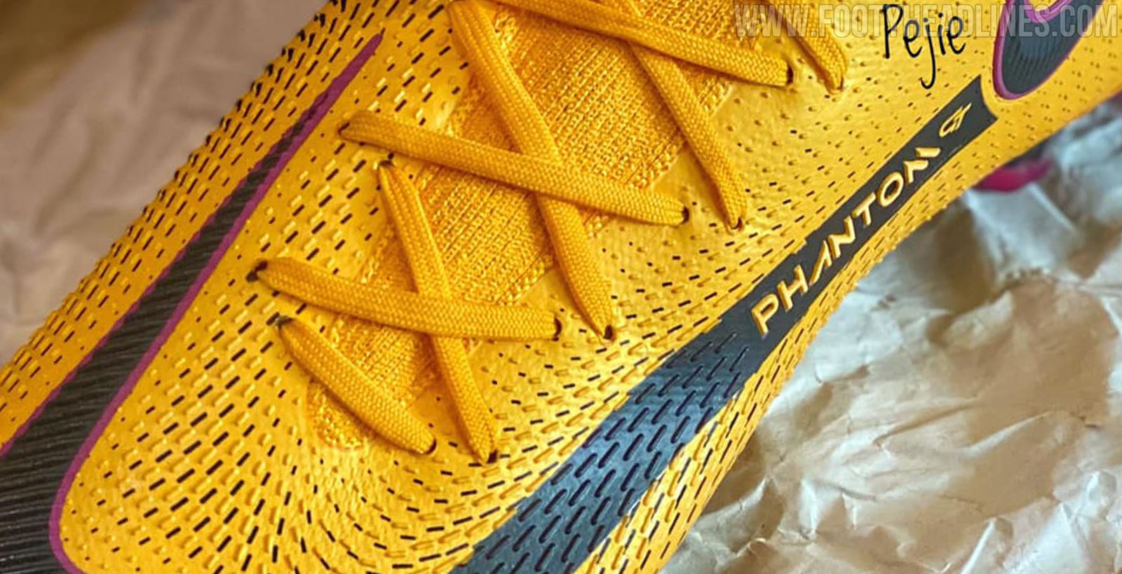 Update: Ein neues Bild der University Gold Nike Phantom GT Fußballschuhe wurde via Pejie geleakt. Sie sehen mehr oder weniger genauso aus wie unsere Vorhersage.