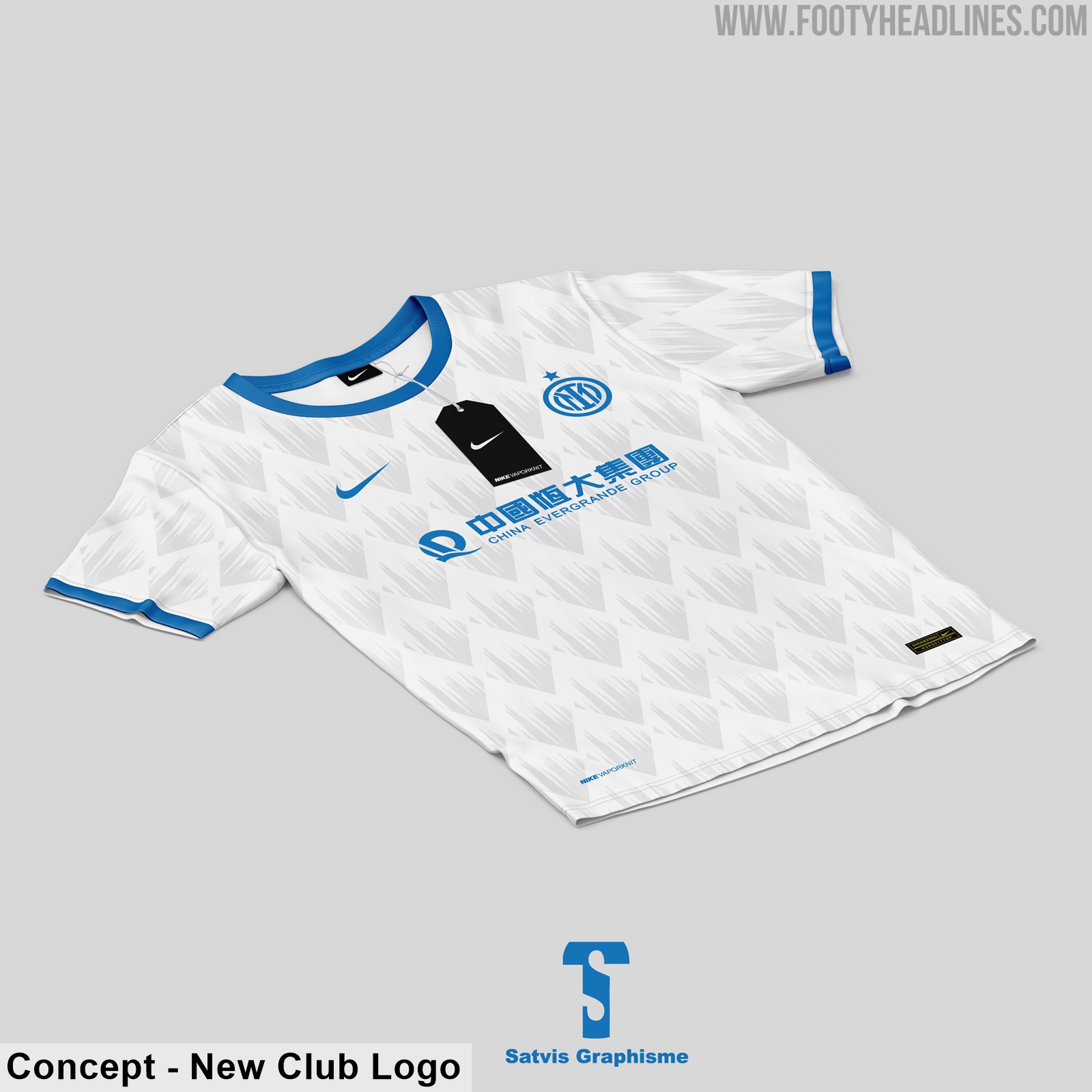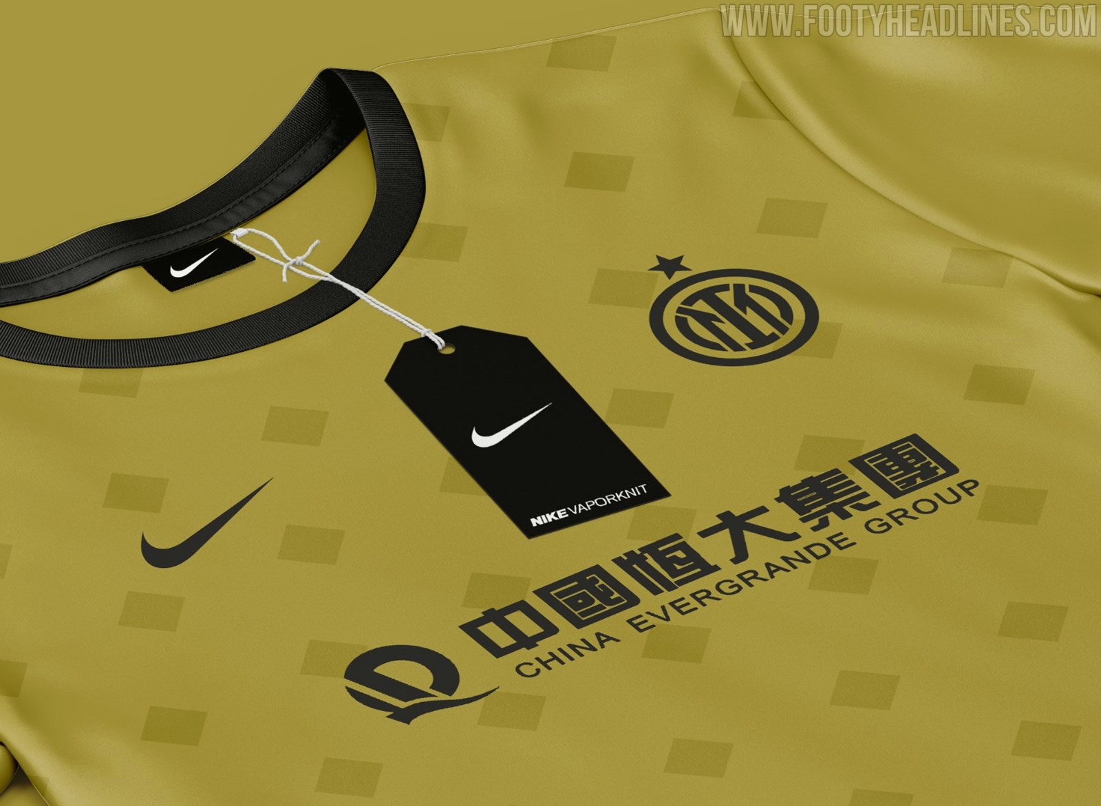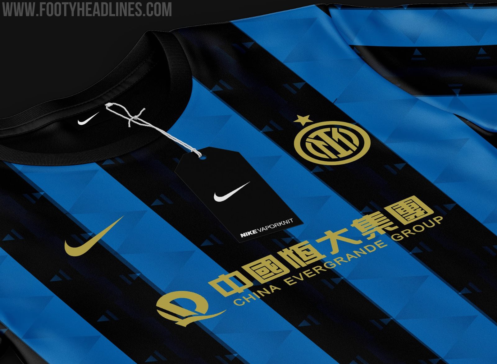 Auf der Vorderseite der Konzept-Trikots ist Inter's möglicher neuer Hauptsponsor China Evergrande Group zu sehen. Pirelli wird Inter Mailand diesen Sommer nach 25 Jahren verlassen.