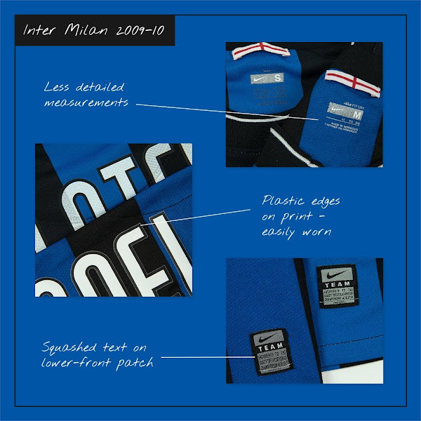Update: Classic Football Shirts hat noch mehr aktuelle gefälschte und echte Fußballtrikots verglichen, darunter das Inter Mailand 2009-10 Trikot, Manchester United 2007-09 Trikot und Roma 01-02 Trikot. Schau es dir an.