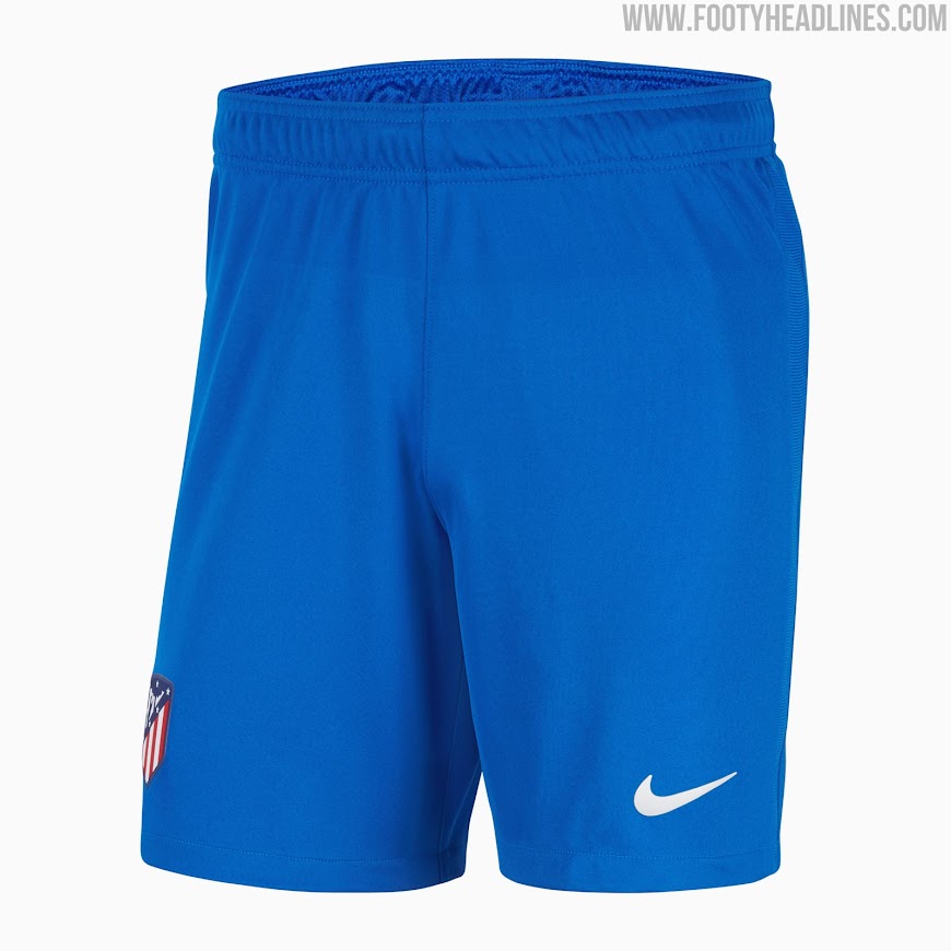 Blaue und weiße Hosen und Stutzen vervollständigen das neue Atletico Madrid 21-22 Trikot.