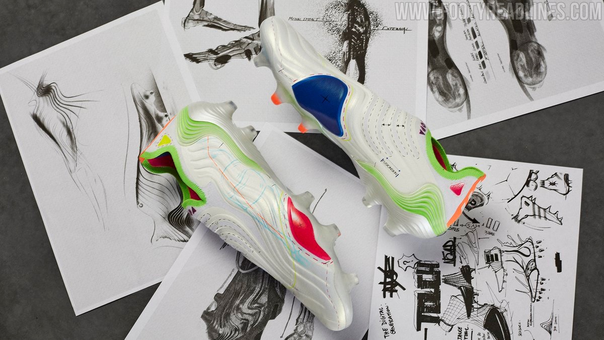 Die neuen Copa Sense+ Inner Life Fußballschuhe von adidas haben ein auffälliges Design mit verschiedenen Farben, die auf die verschiedenen technischen Elemente - die SensePods, TouchPods und SoftStuds - aufgetragen sind.