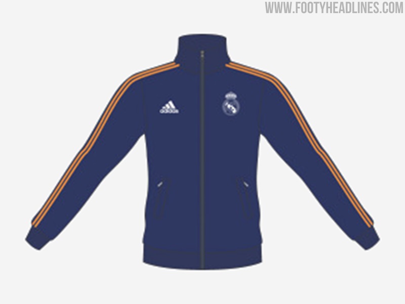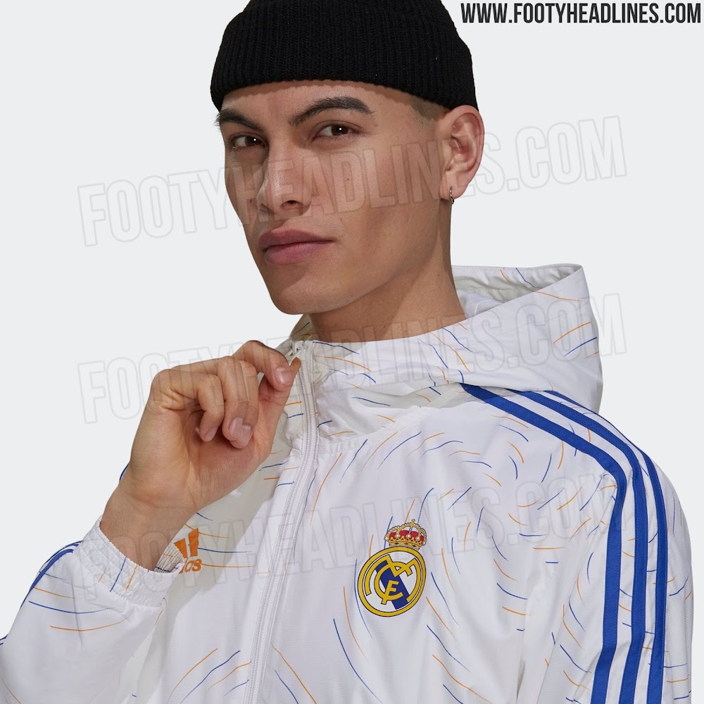 In der Tat wird das Trikot von Real Madrid 21-22 weiß mit orangen und blauen Applikationen sein - das wahrscheinliche Design des Trikots (inspiriert von der Wasserfontäne der Plaza de Cibeles) ist auf einer durchgesickerten Einlaufjacke zu sehen.