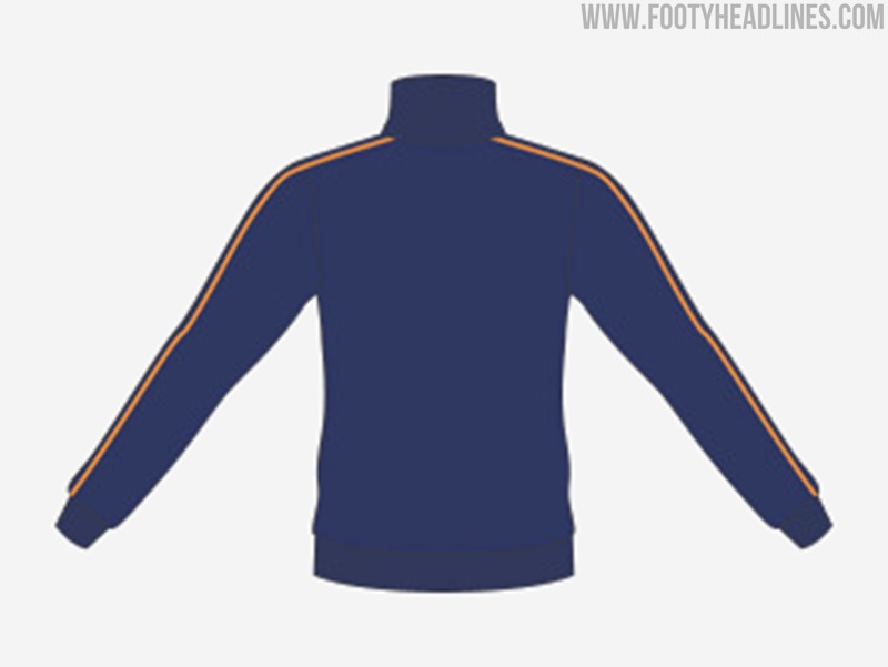 Für das Auswärtstrikot entscheidet sich Adidas für eine navy/orange Farbkombination - die gleichen Farben werden für Trainingsjacke und Hose verwendet. Das herausragende Element des Auswärtstrikots "wird ein Allover-Grafikdesign im Graffiti-Stil mit verschiedenen kleinen Designelementen wie Pfeilen und Kronen sein".