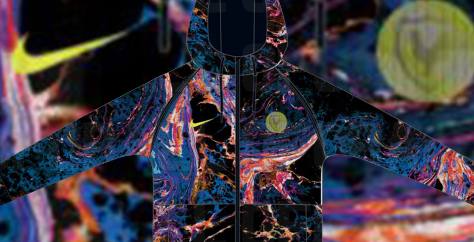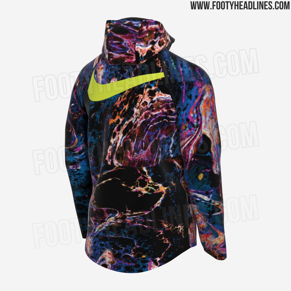 Die Nike Tottenham Hotspur 2021-22 Auswärtsjacke besticht durch ihren verrückten Look. Die Jacke kombiniert eine schwarze Basis mit Venom Green Logos und einem außergewöhnlichen All-Over Multicolor Grafikprint.