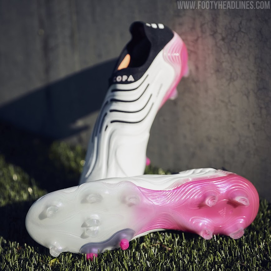 Die neuen 'White / White / Shock Pink' Adidas Copa Sense Fußballschuhe haben einen kühnen, aber knackigen Look. Sie kombinieren ein komplett weißes Obermaterial mit Shock Pink für die Sohlenplatte.