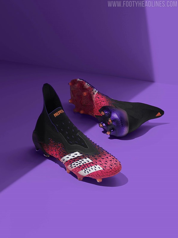 Als Teil der Superspectral Kollektion kombinieren die neuen Adidas Predator Freak+ Superspectral Fußballschuhe eine schwarze Basis mit weißen Logos und 'Shock Pink' Applikationen.