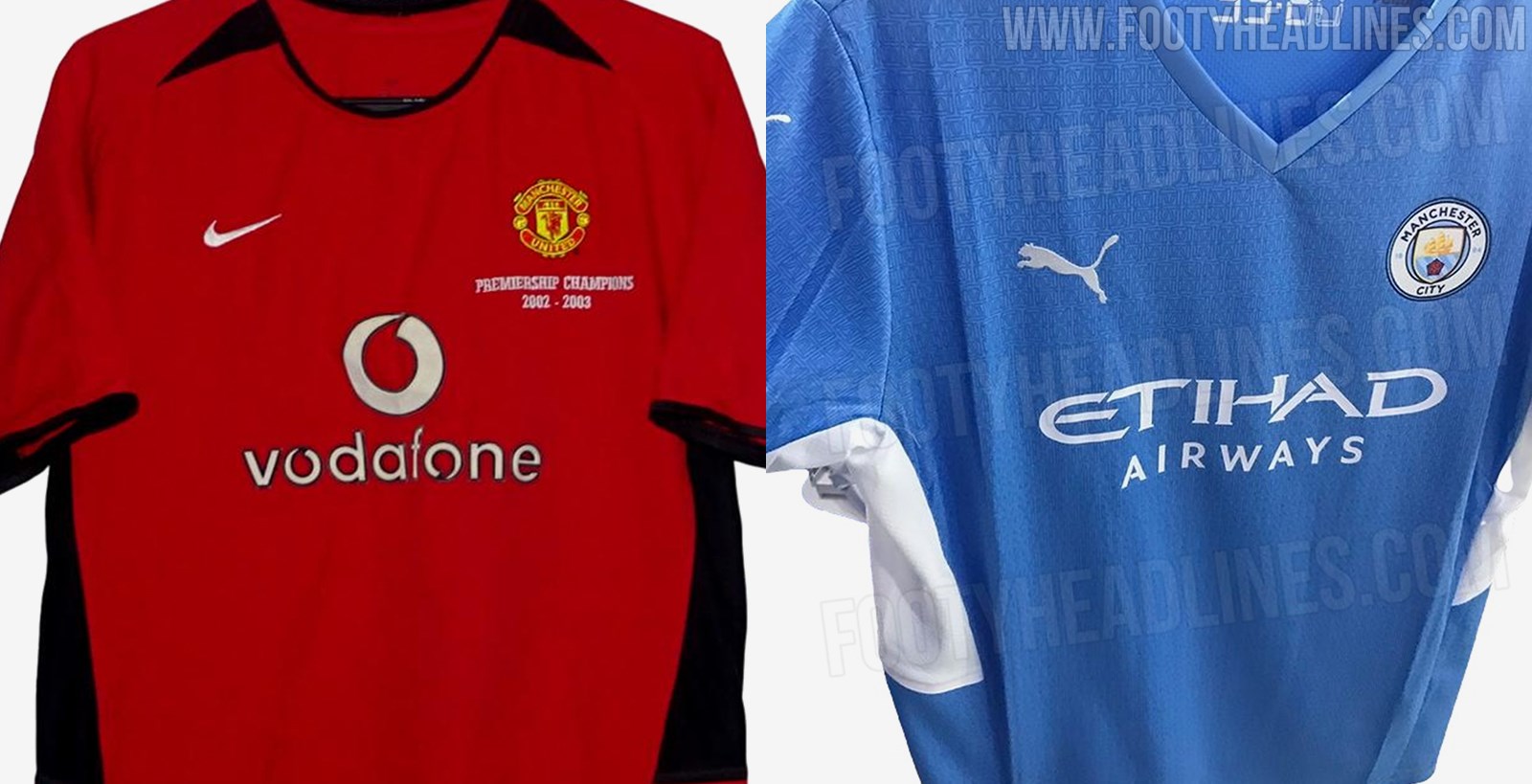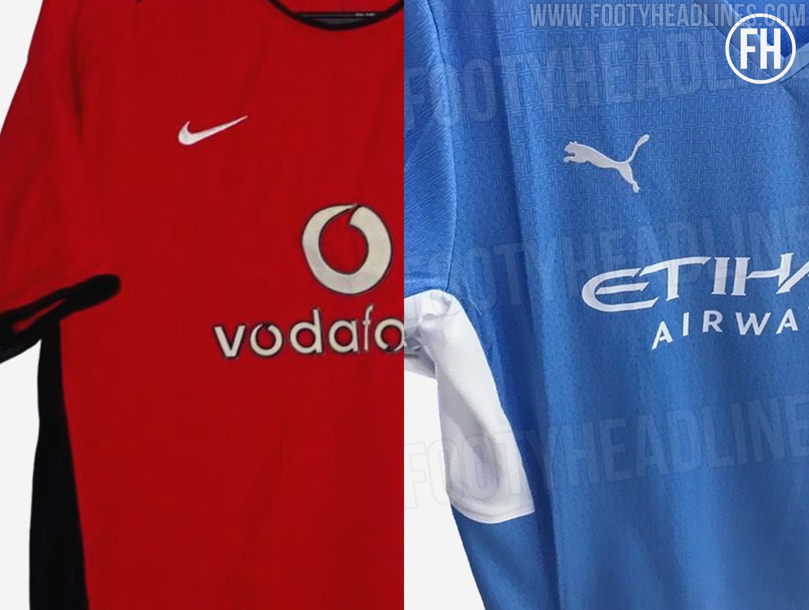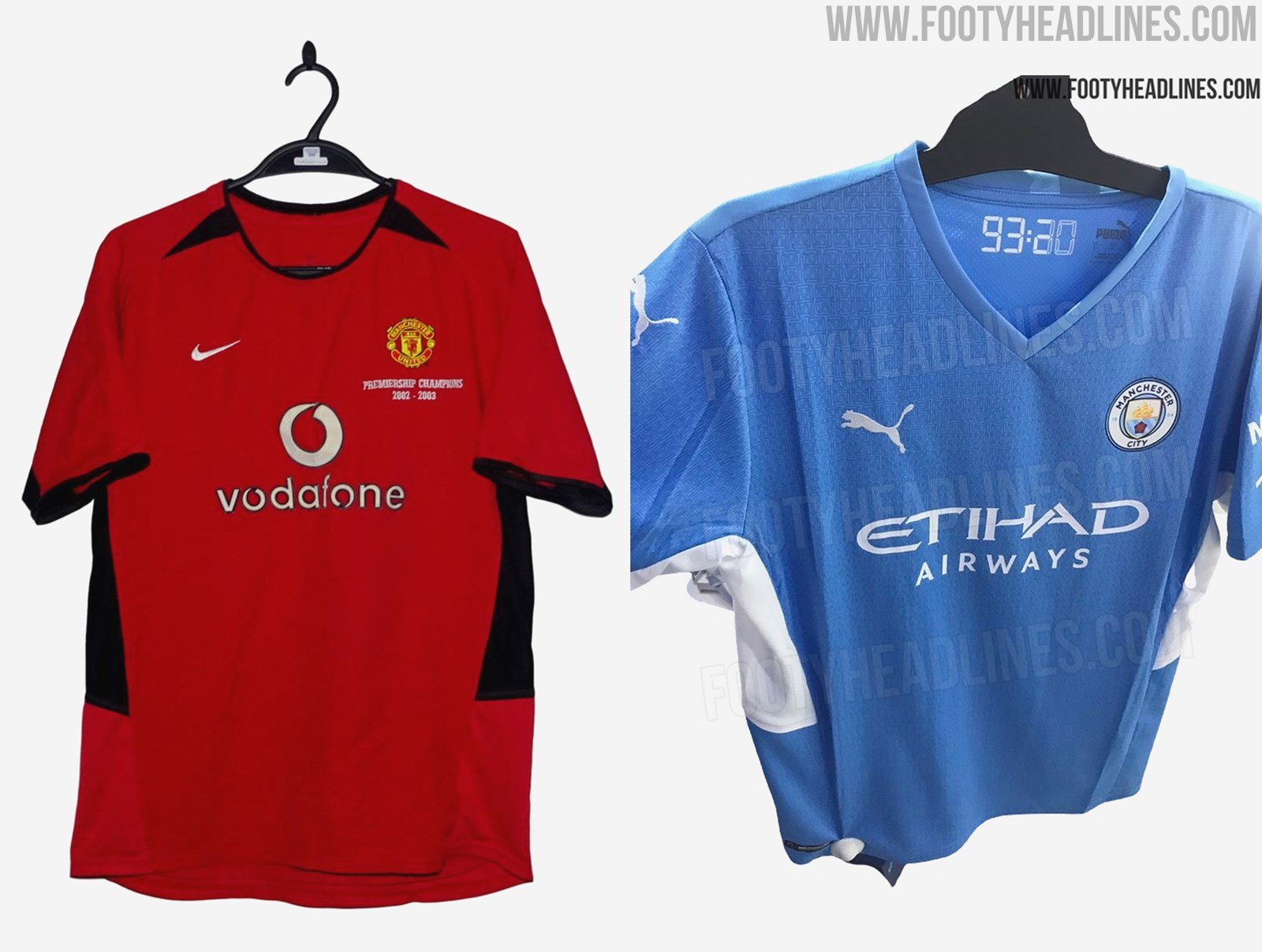 Das neue Puma Manchester City 21-22 Trikot hat Seitenteile, die den Seitenteilen des 2002-04 Trikots von Manchester United bemerkenswert ähnlich sind.