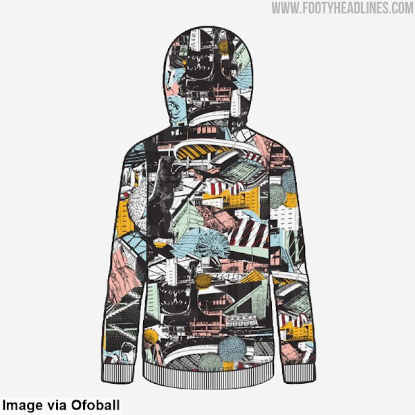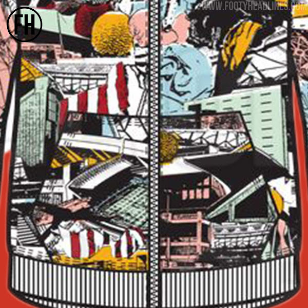 Die Nike Atletico Madrid 2022-2023 Jacke besticht durch einen außergewöhnlichen Look, der alles andere als klassisch ist. Inspiriert von Atléticos neuem (Wanda Metropolitana) und altem (Vicente Calderón) Stadion und dem Neptunbrunnen, besticht die Nike ATM 2022-23 Jacke mit einem Allover-Grafikdesign im Comic-Stil.
